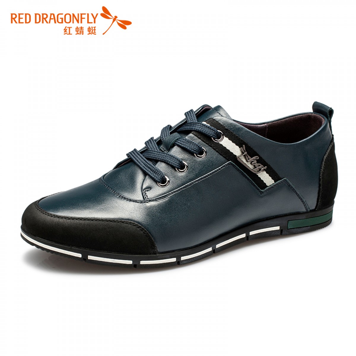商品名称:红蜻蜓 真皮男单鞋 春季新款时尚男士休闲金属系带男鞋皮鞋