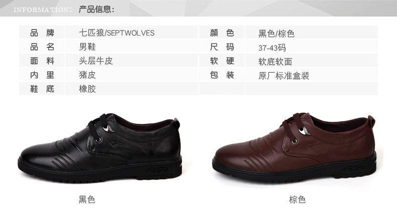 商品名称:七匹狼 男鞋新款软皮头层牛皮防褶皱男士软底软面休闲真皮皮鞋