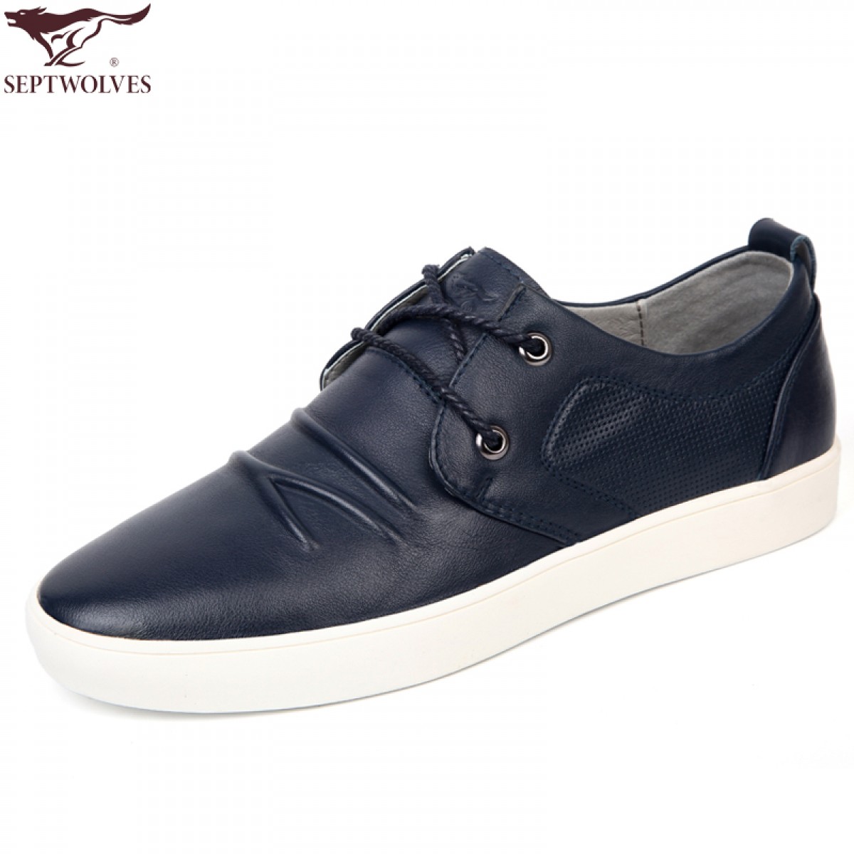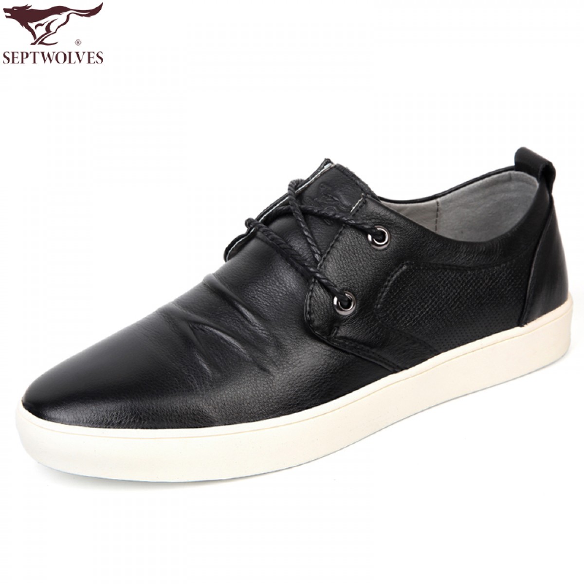 商品名称:七匹狼 男鞋17款防褶皱头层牛皮男士商务休闲真皮时尚白底系带皮鞋
