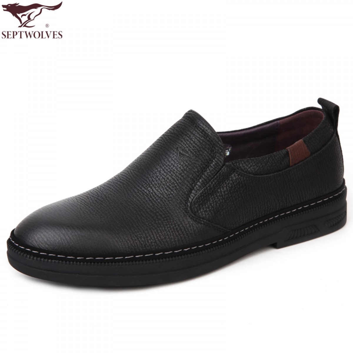 七匹狼 男鞋新款头层牛皮软底软面套脚时尚商务休闲男士皮鞋子