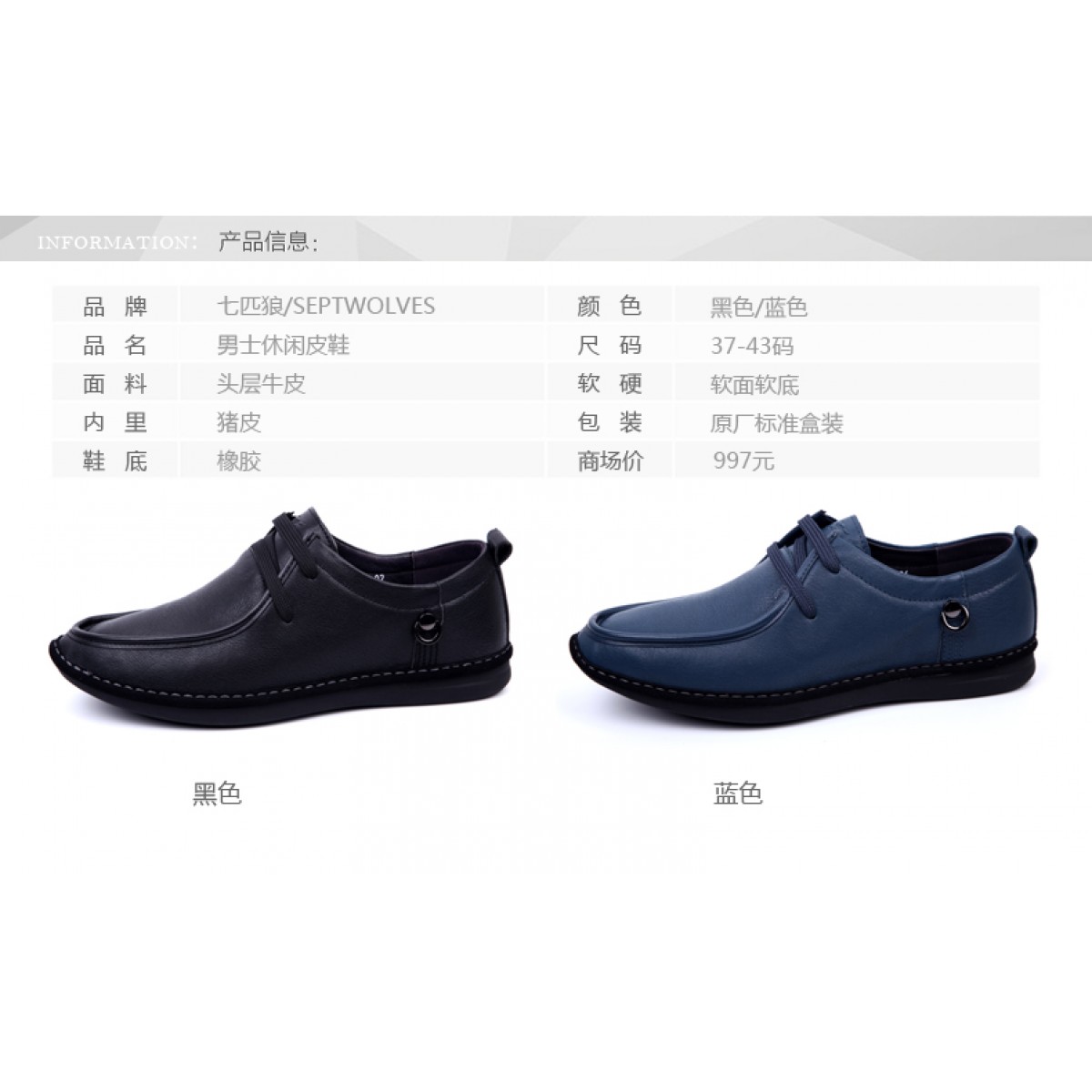 商品名称:七匹狼 男鞋新款男士头层牛皮时尚真皮系带软底软面休闲皮鞋