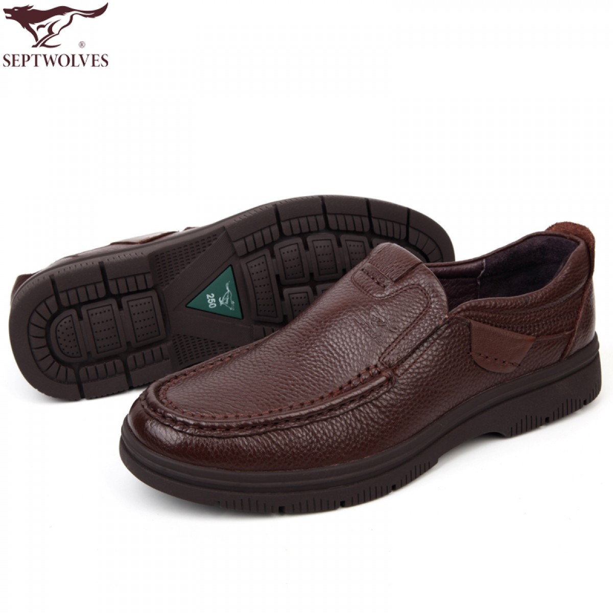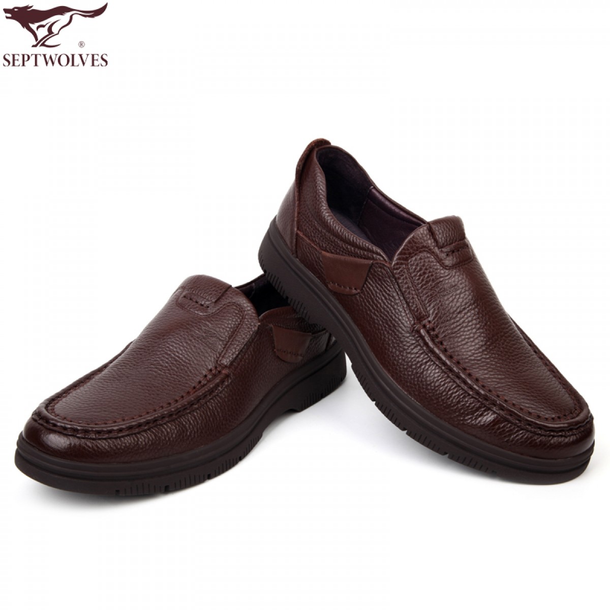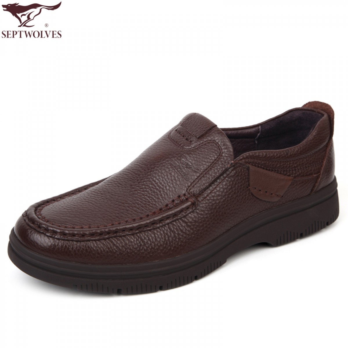 七匹狼 男鞋头层牛皮男士日常休闲套脚棕色橡胶底真皮皮鞋子
