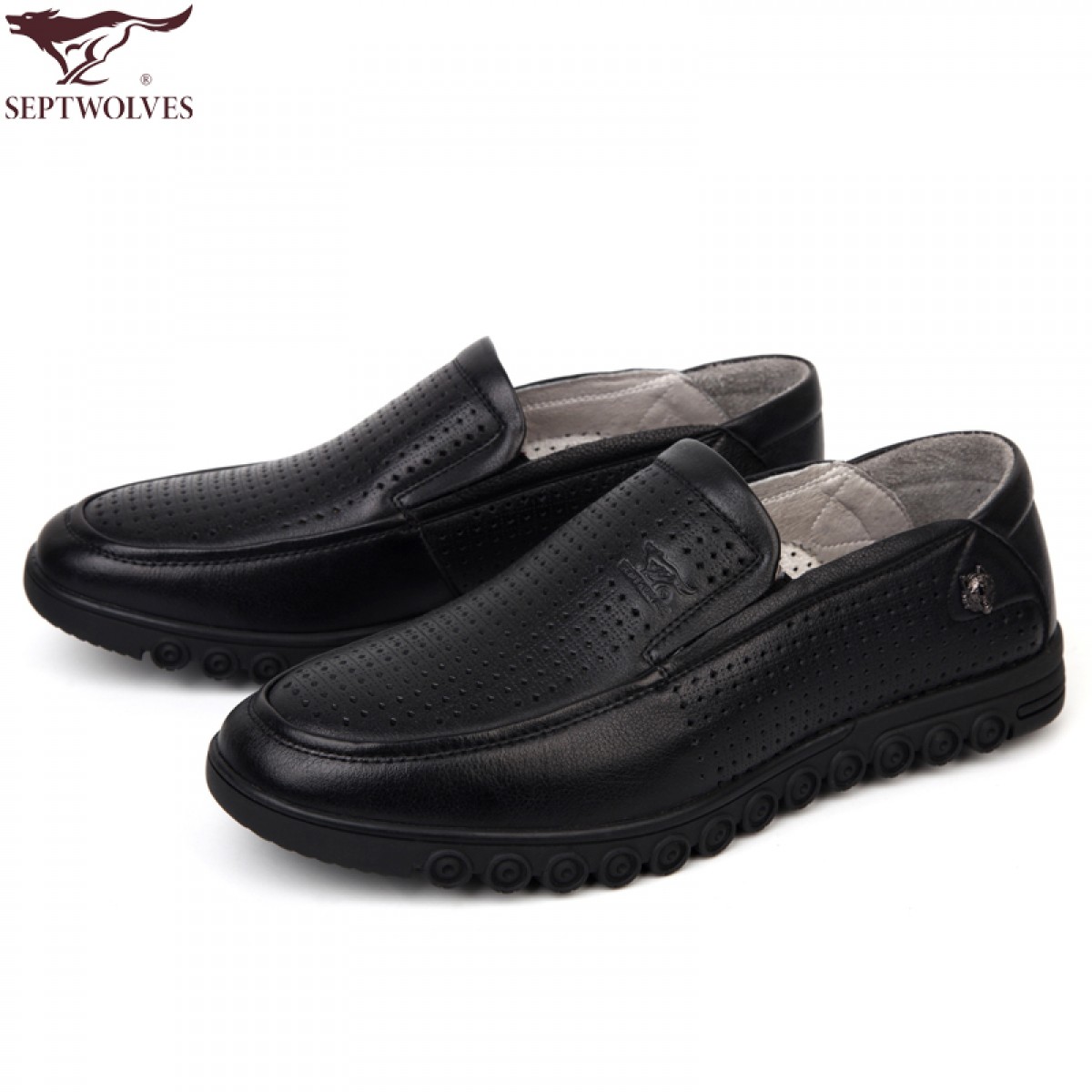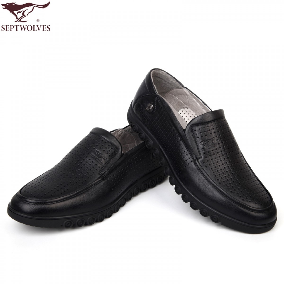 七匹狼 皮凉鞋男士头层牛皮镂空打孔男鞋夏时尚透气真皮黑皮鞋
