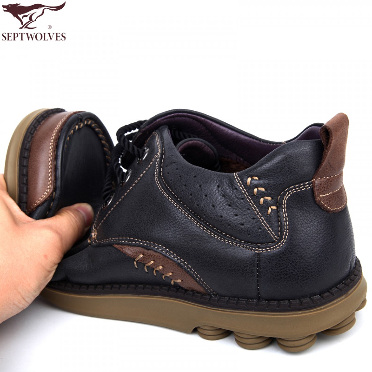 商品名称:七匹狼 棉鞋男鞋冬季头层牛皮男士复古工装加绒保暖高帮真皮毛皮鞋