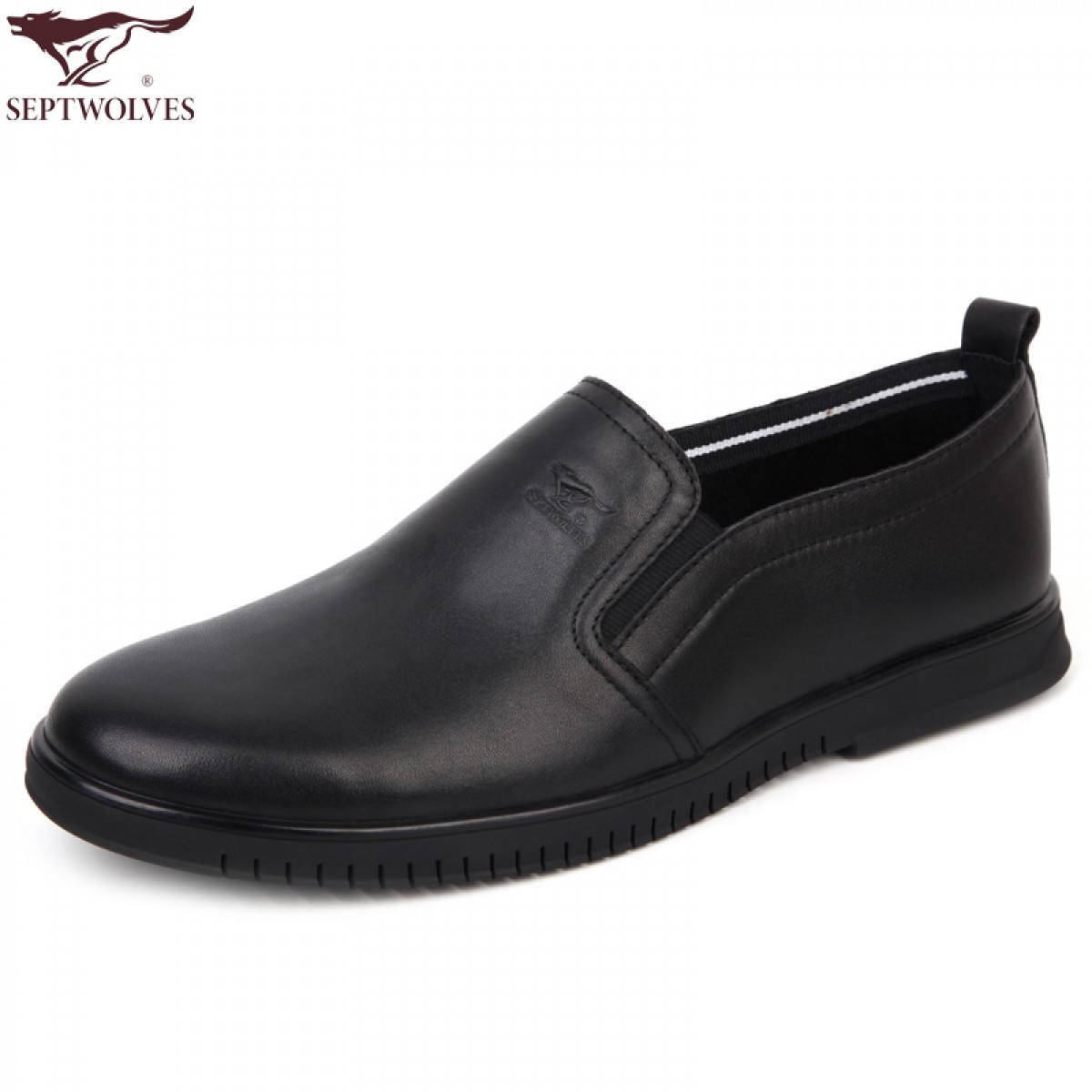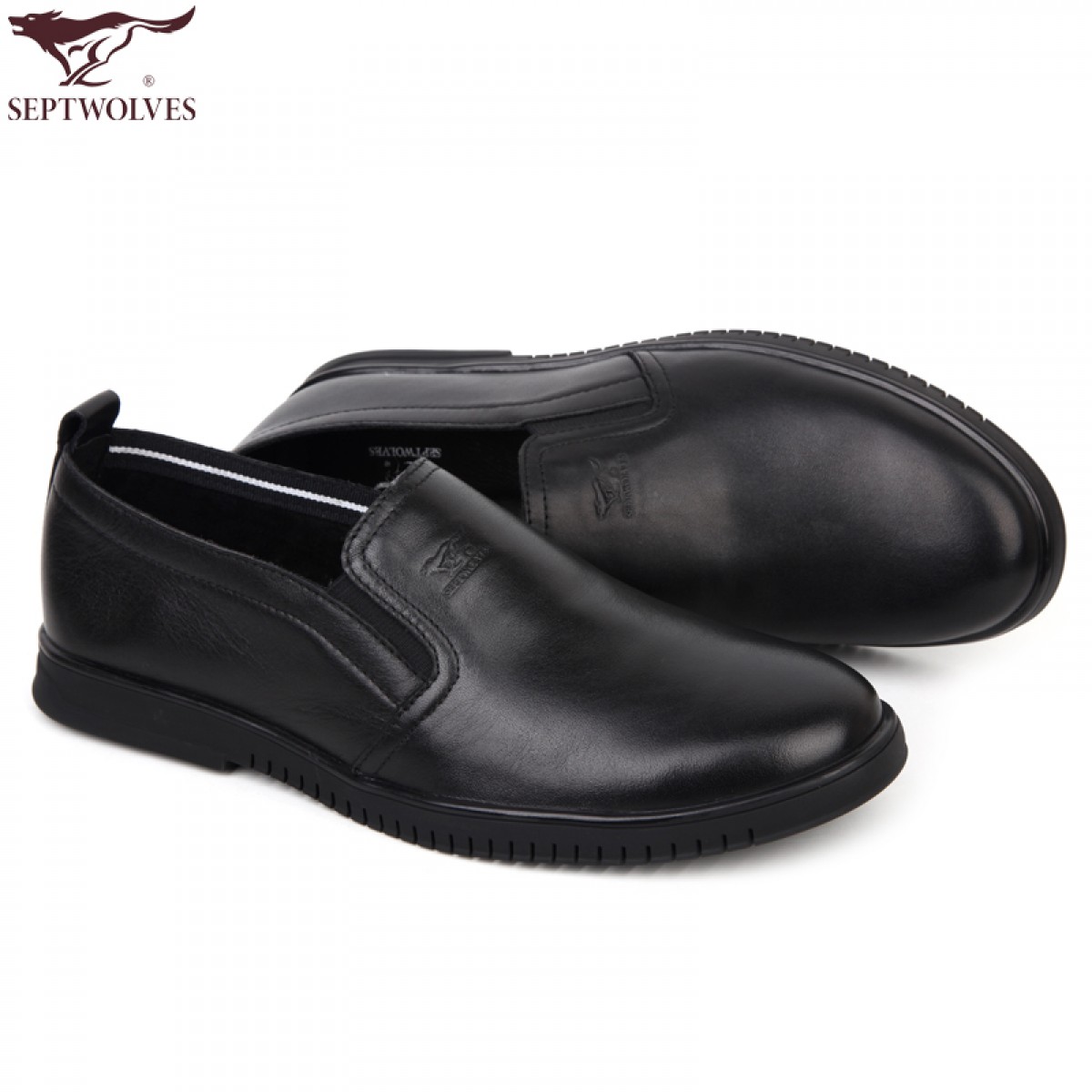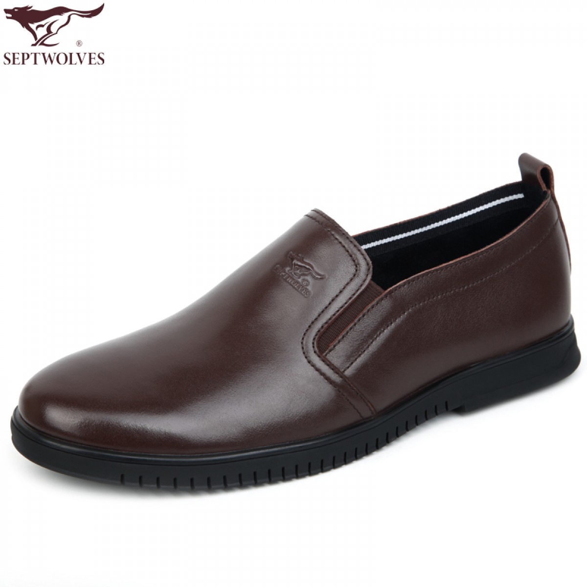 七匹狼 皮鞋新款头层牛皮男士商务休闲套脚真皮软底软面男鞋子