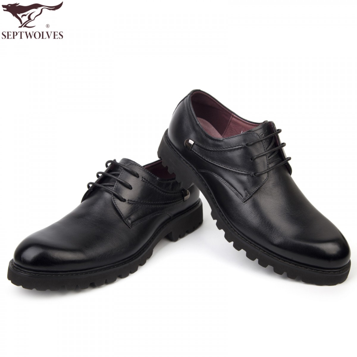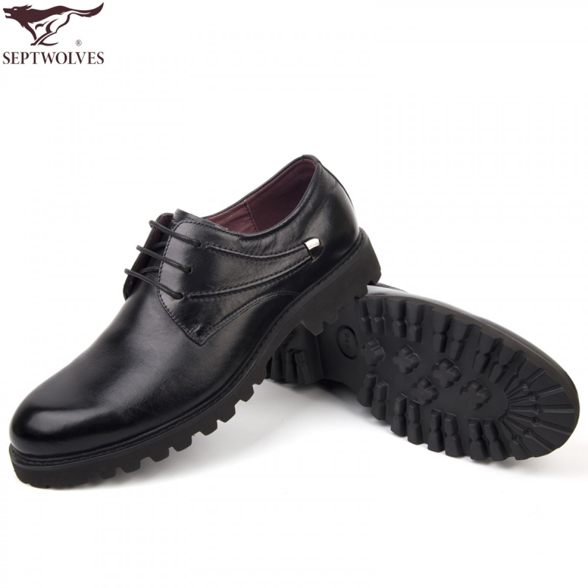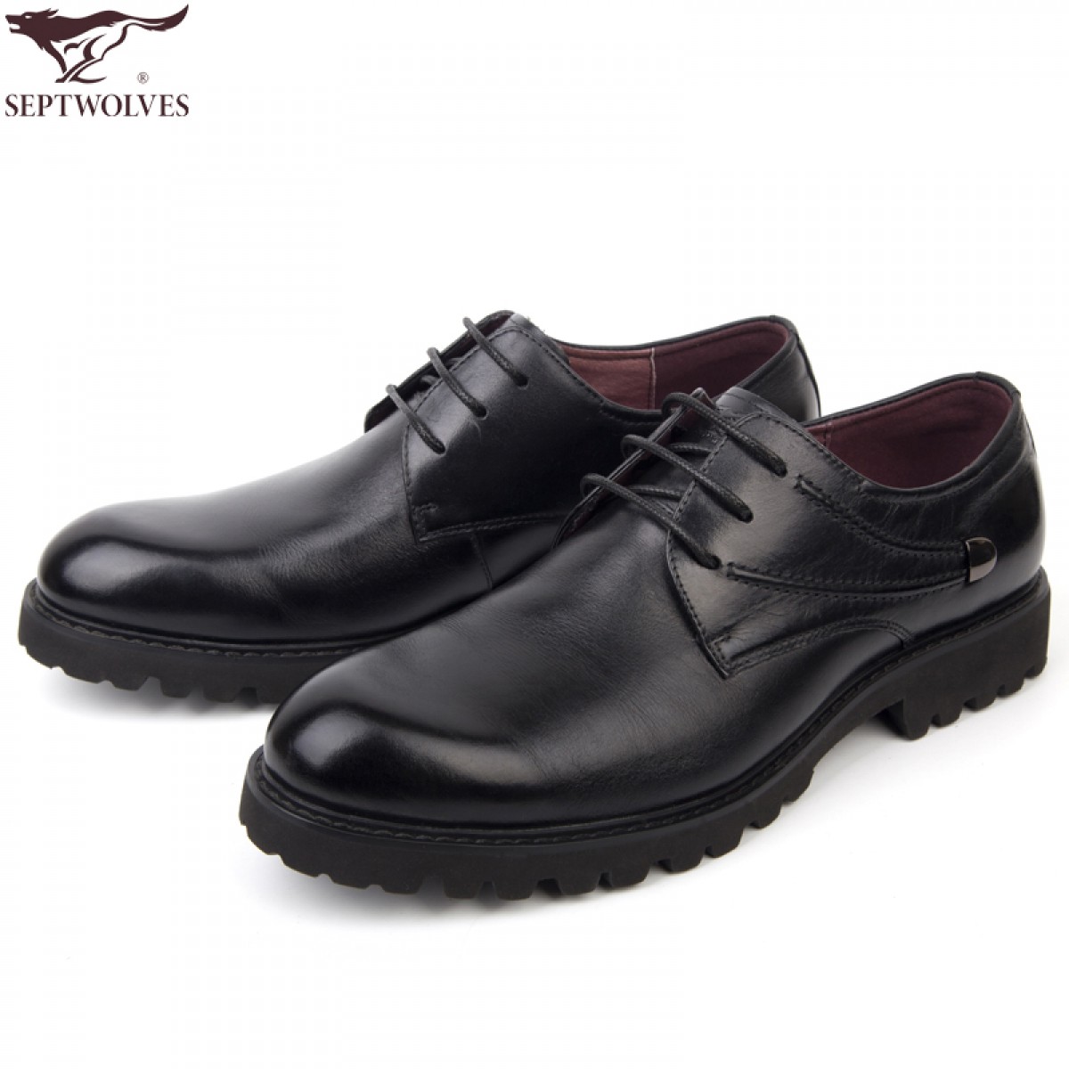 七匹狼 男鞋头层牛皮轻质鞋底男士系带商务休闲大头皮鞋子