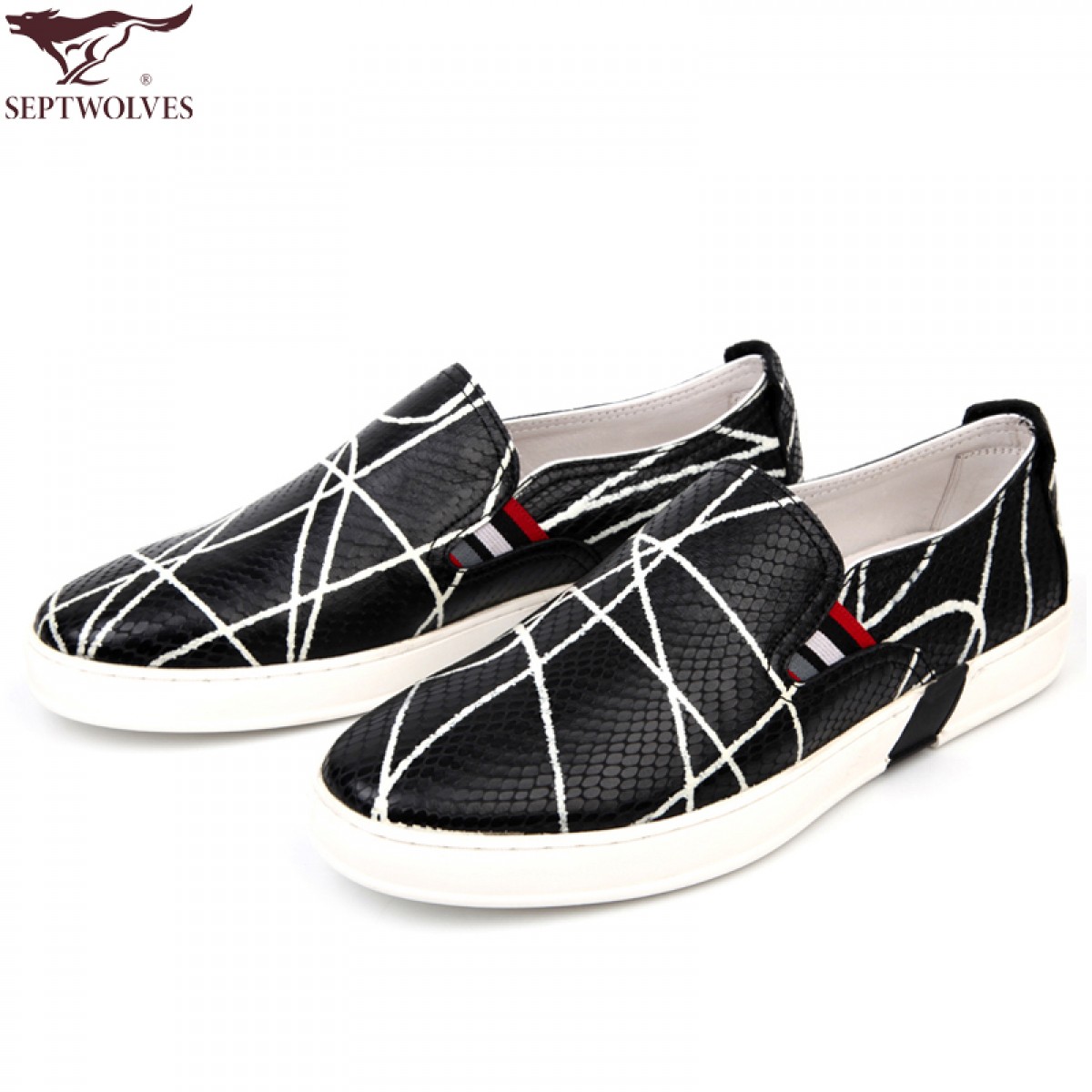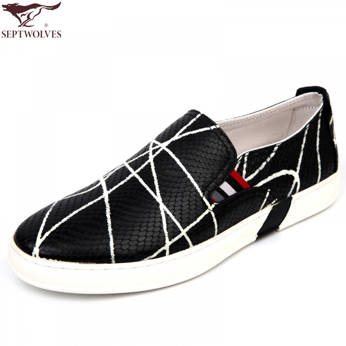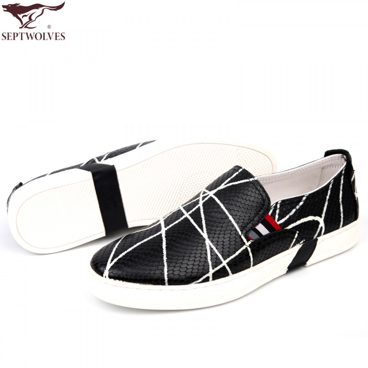 商品名称:七匹狼 男鞋新款头层牛皮商务休闲男士鞋真皮时尚蛇皮纹路白底皮鞋