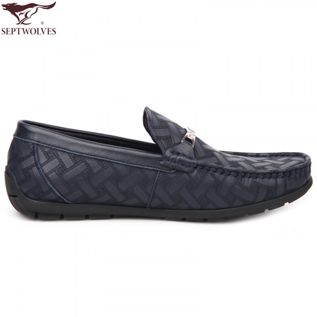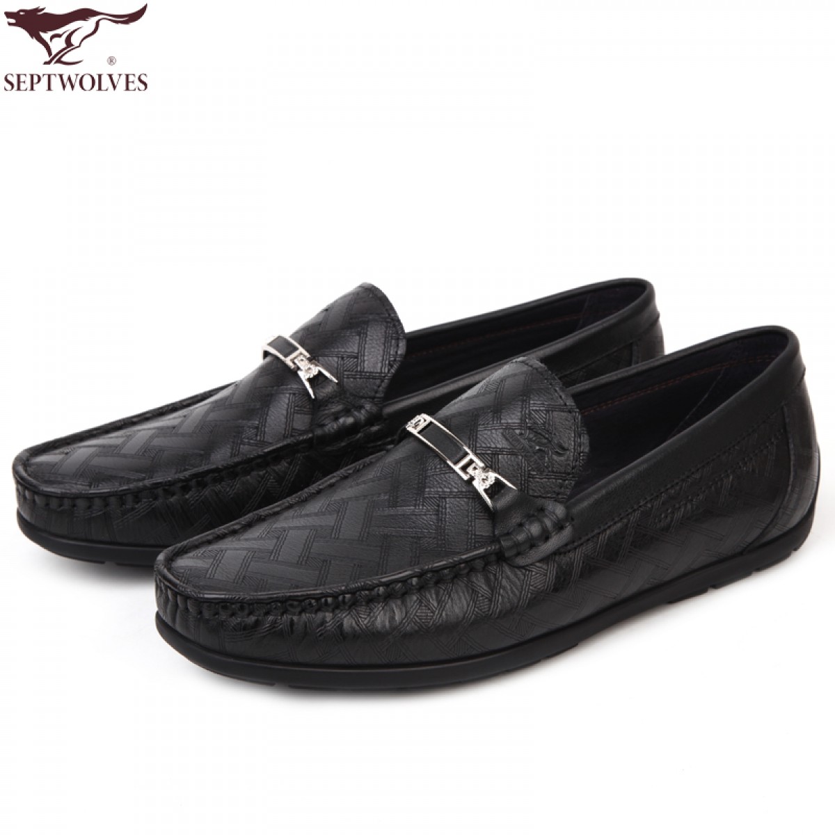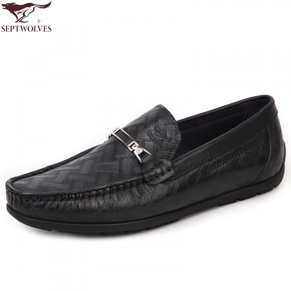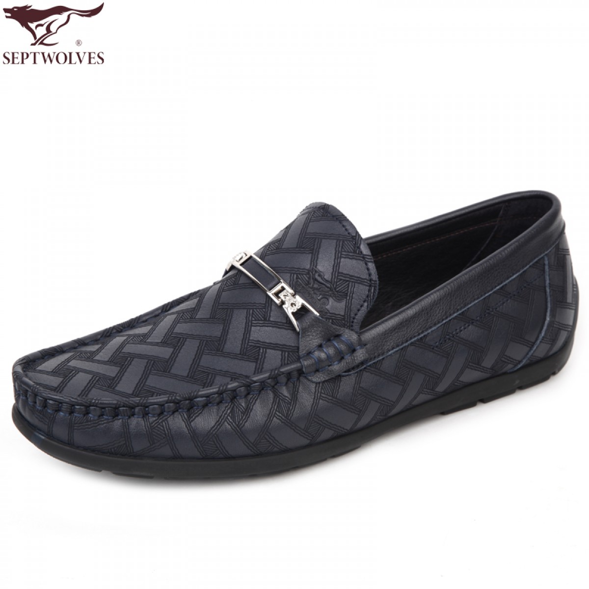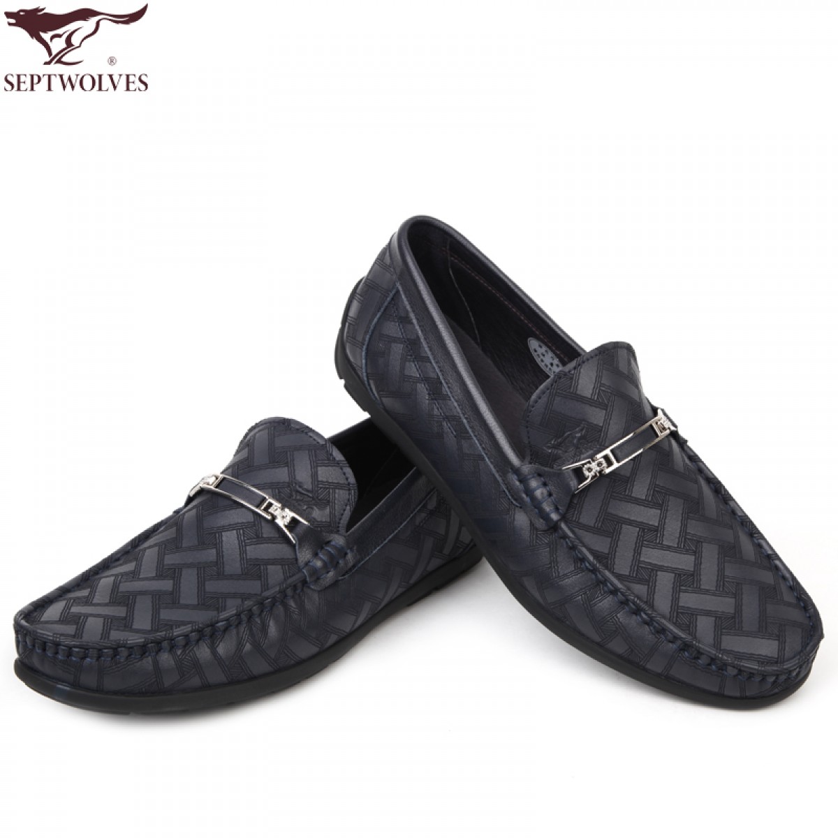 七匹狼 男鞋新款时尚休闲头层牛皮真皮面料线缝包边男士皮鞋子