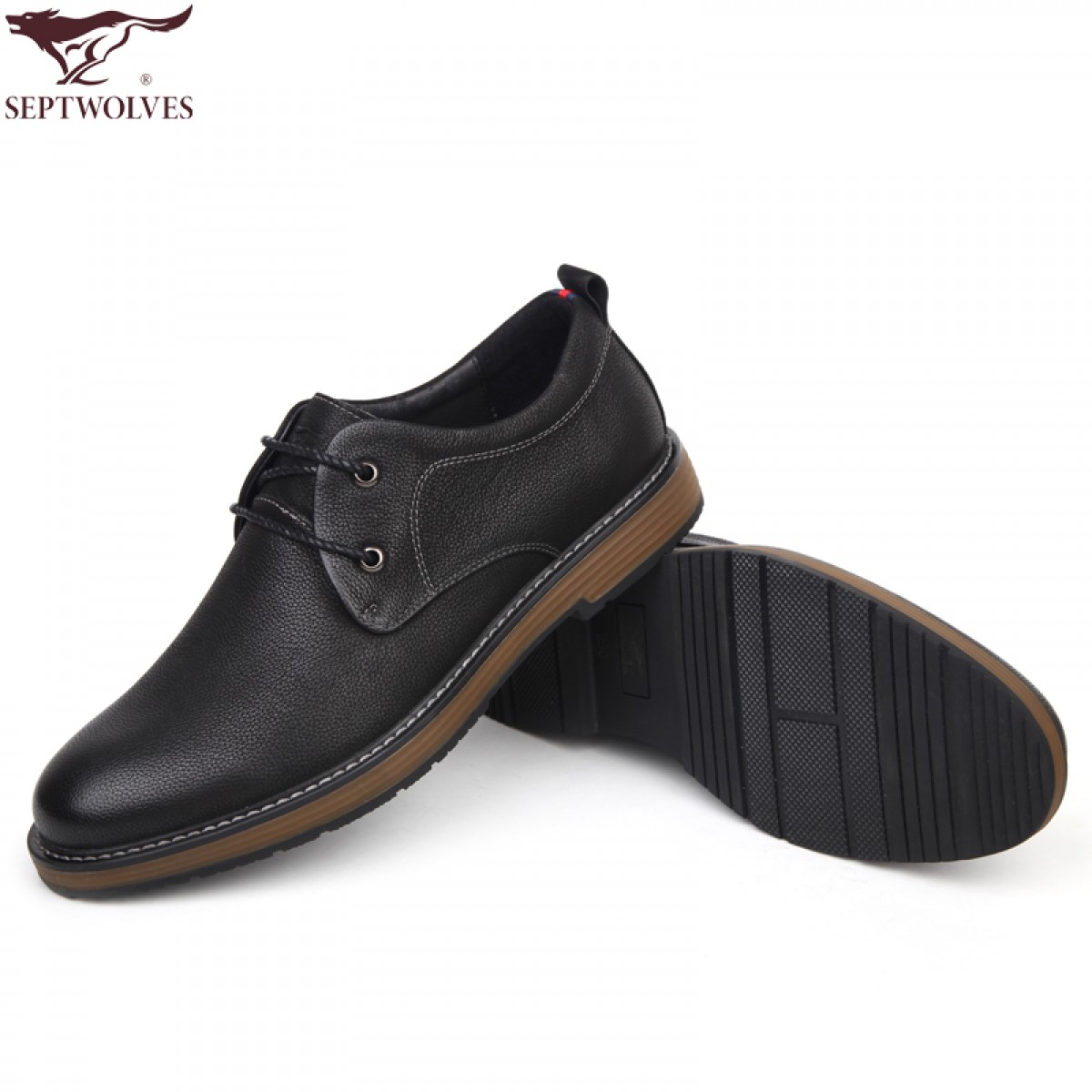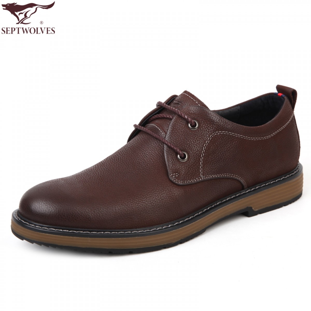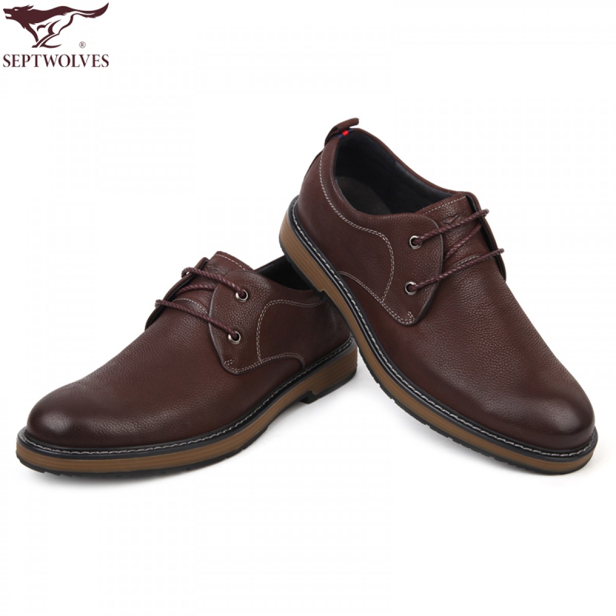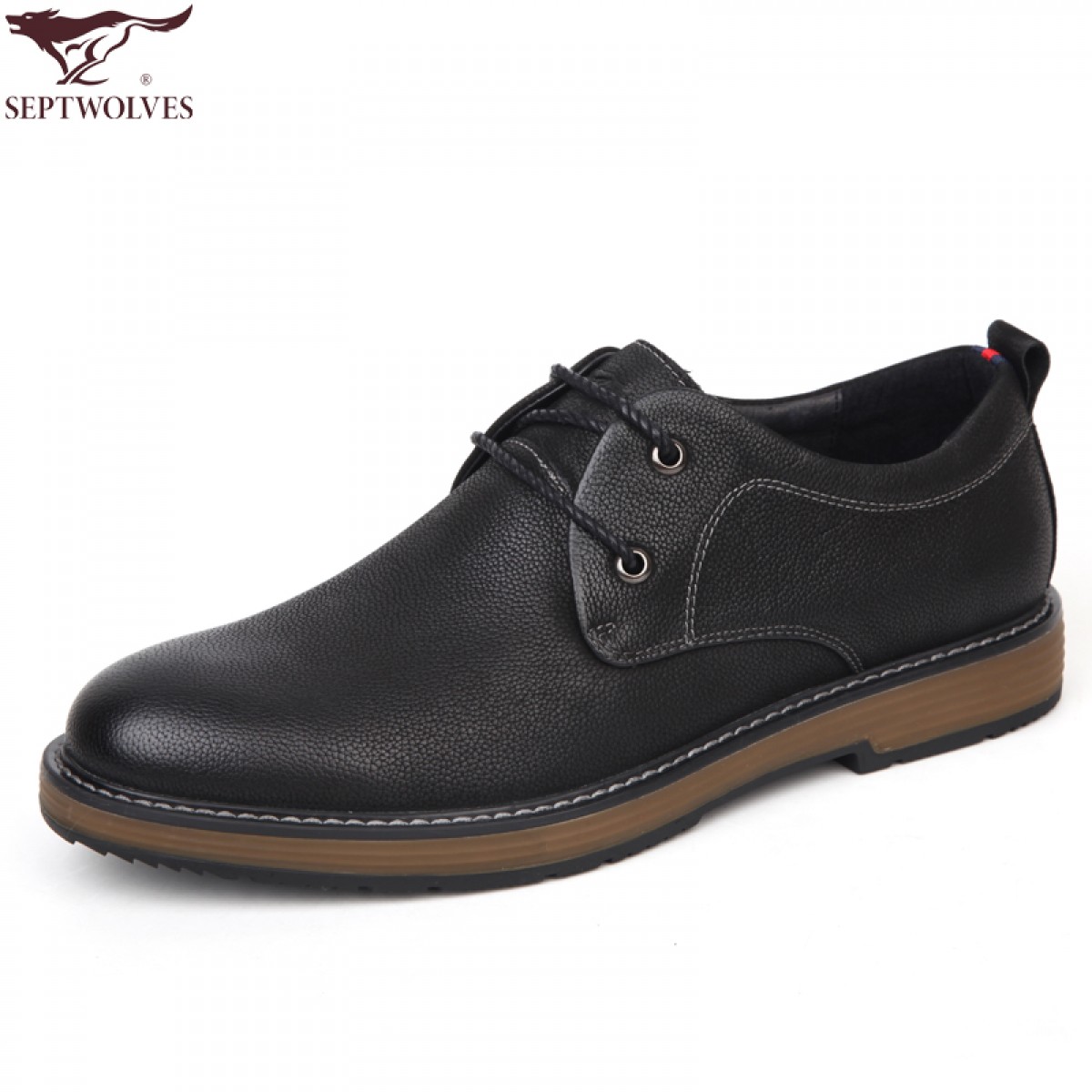 七匹狼 男鞋新品头层牛皮休闲男鞋软底软面时尚系带皮鞋子