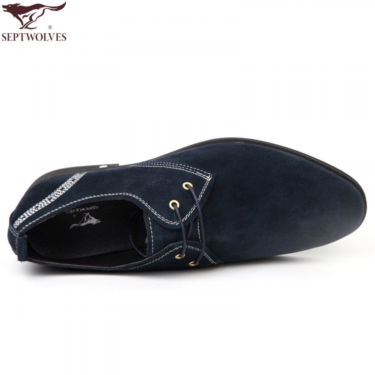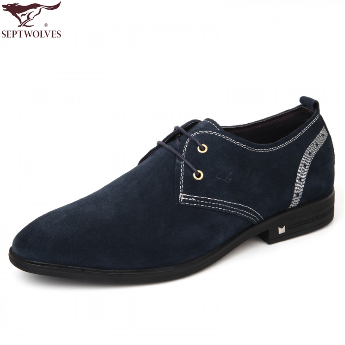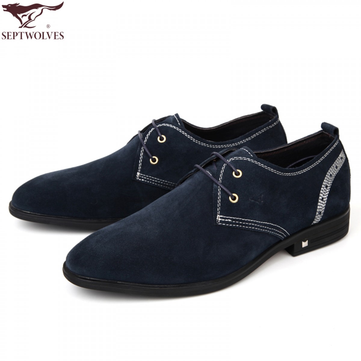 七匹狼 男鞋磨砂皮男士商务正装蓝色系带橡真皮皮鞋胶底鞋子
