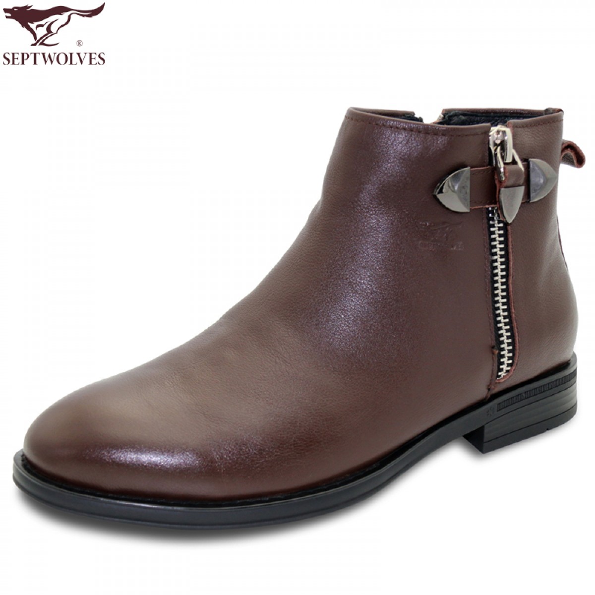 七匹狼 男鞋新款头层牛皮拉链商务正装高帮真皮男士皮鞋