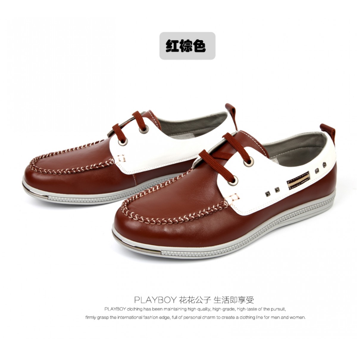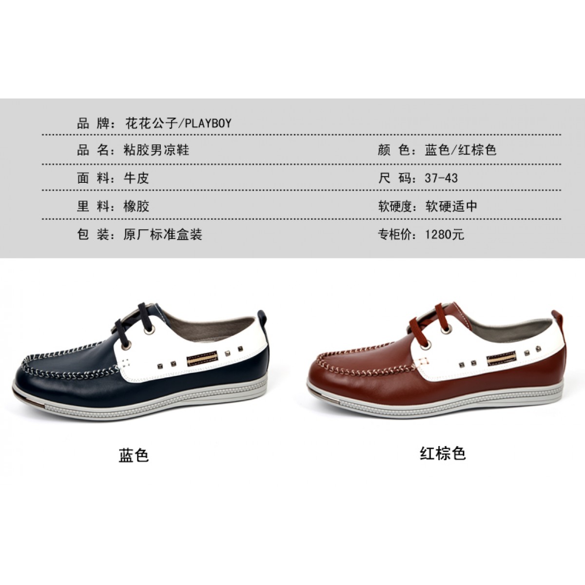 商品名称:花花公子 男式皮鞋新款真皮头层牛皮时尚商务休闲系带男鞋