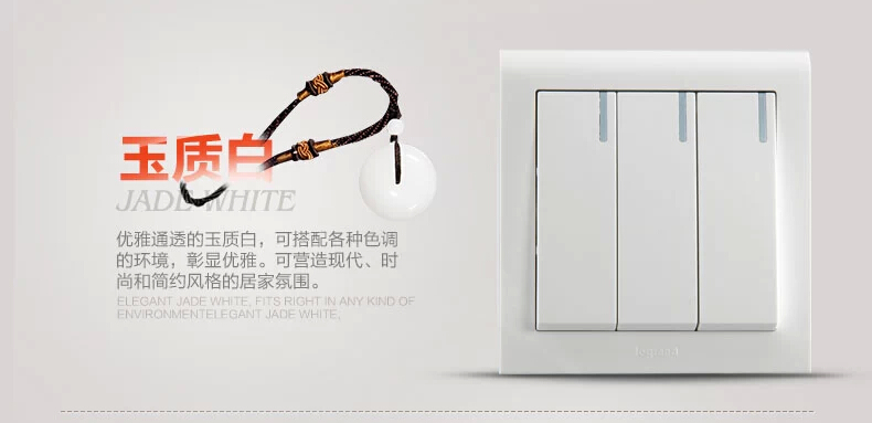 罗格朗 开关插座 K5系列 86型三开单控带LED灯墙壁开关面板