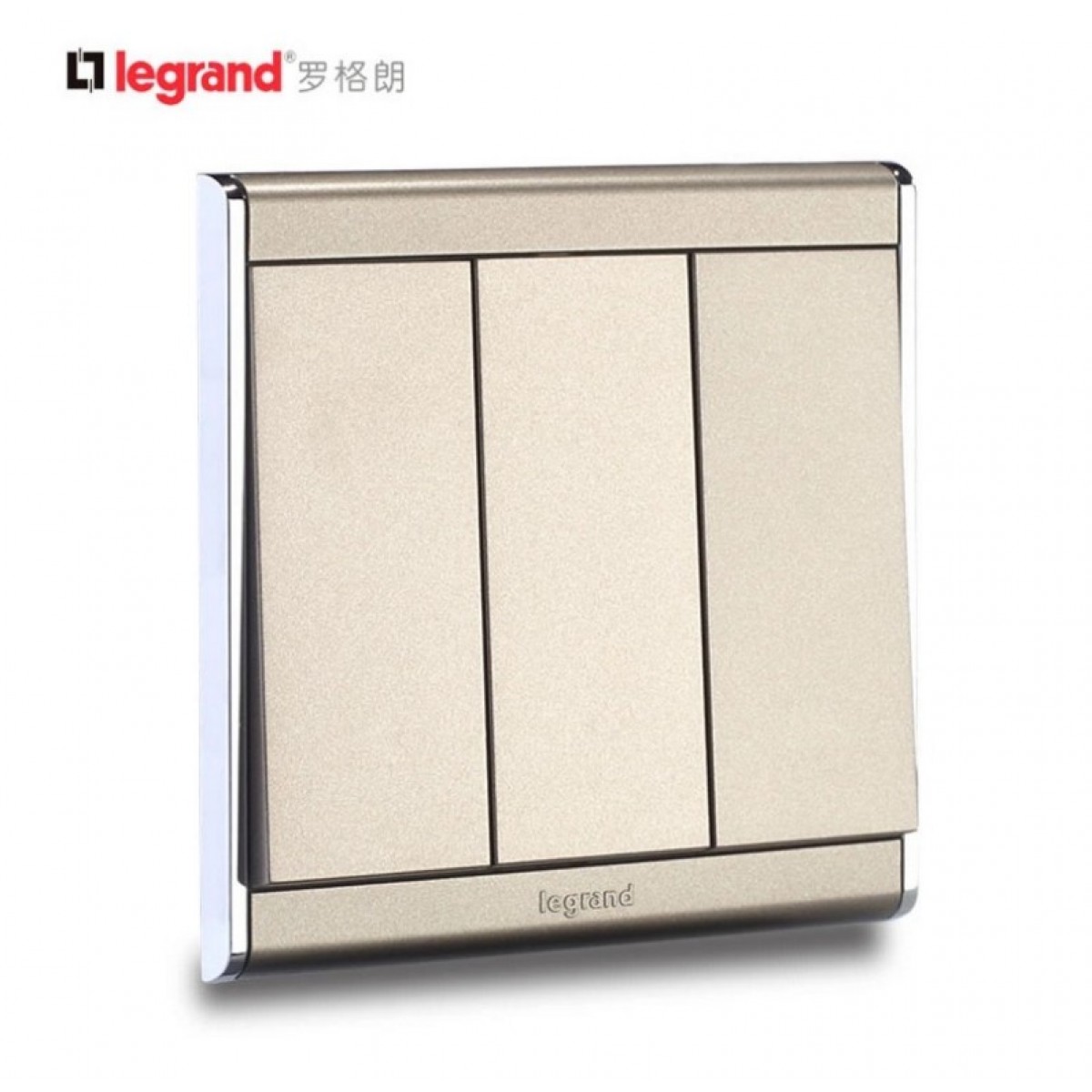 商品名称:罗格朗 尚韵缎沙金开关插座面板 86型三开单控开关面板