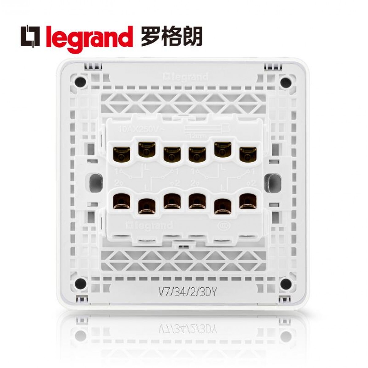 商品名称:罗格朗 开关插座开关插座面板86型冰莹白四开双控荧光面板