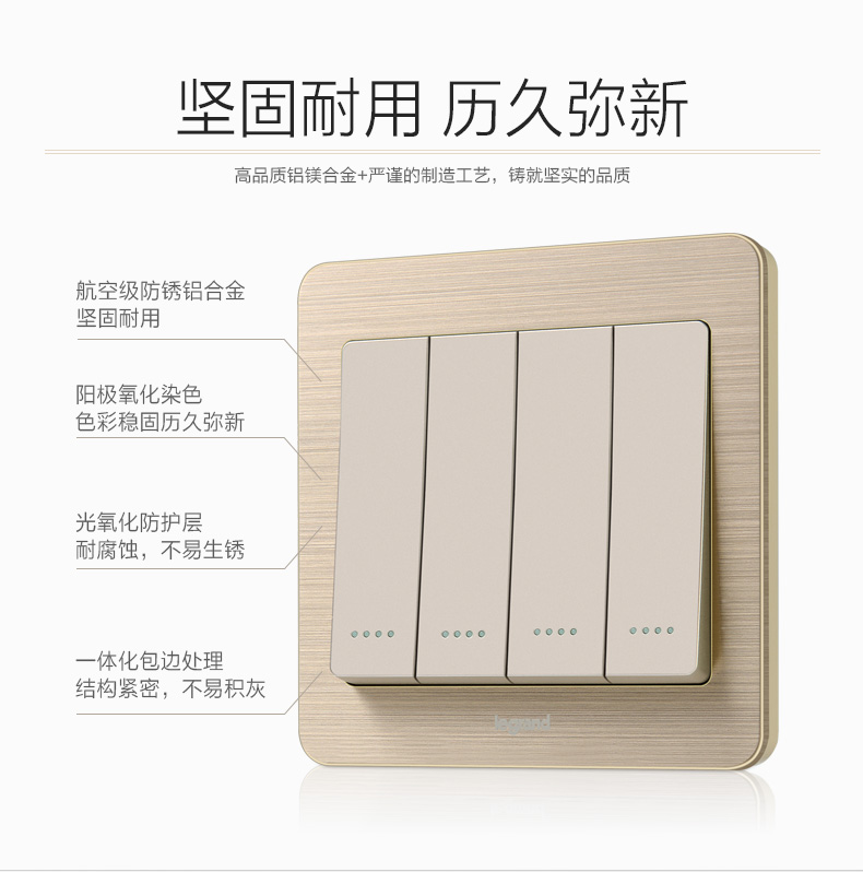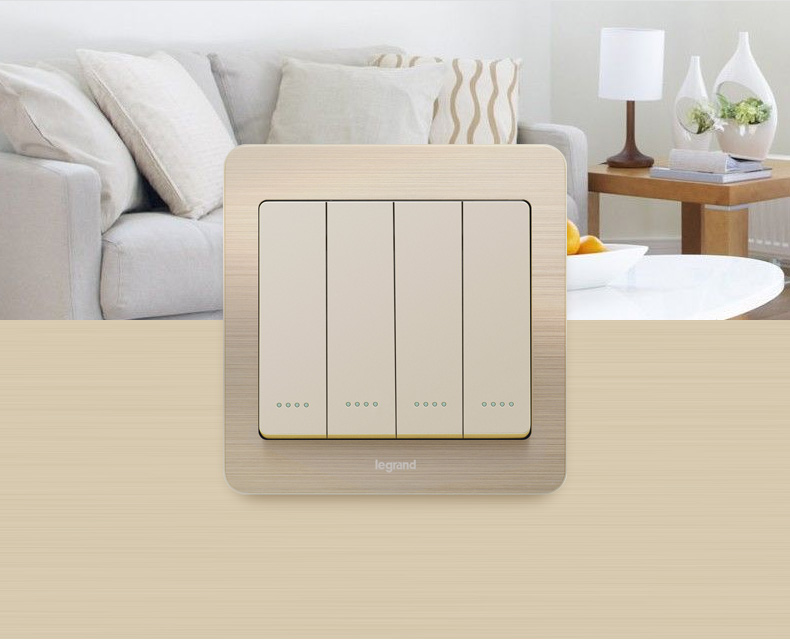 罗格朗 开关插座细金纹四开单控荧光开关 四联单控开关面板荧光