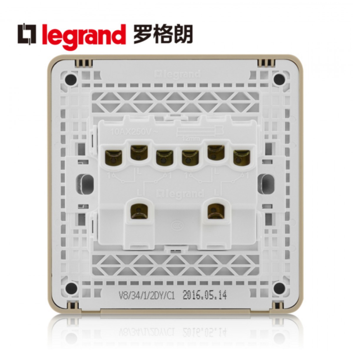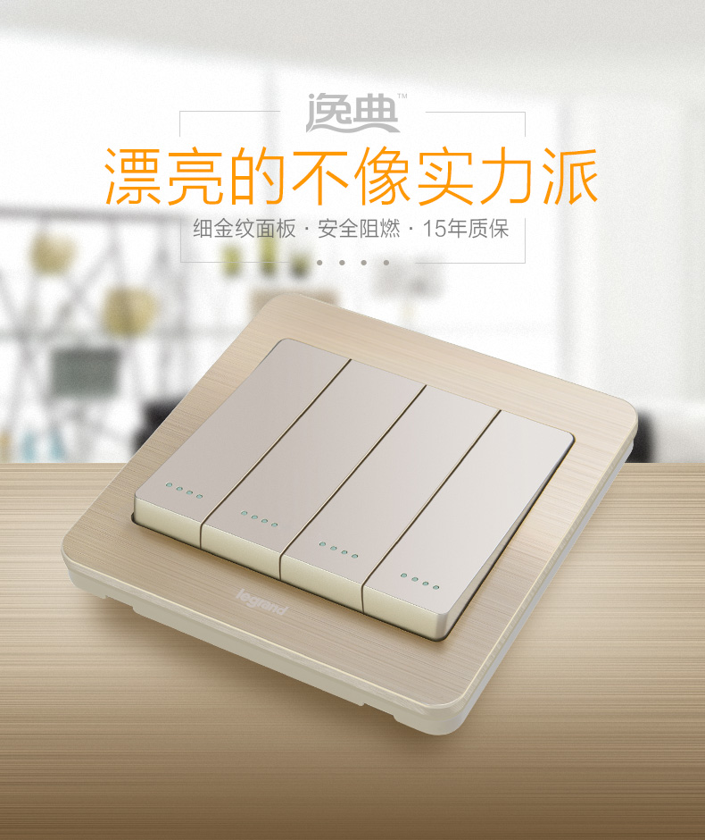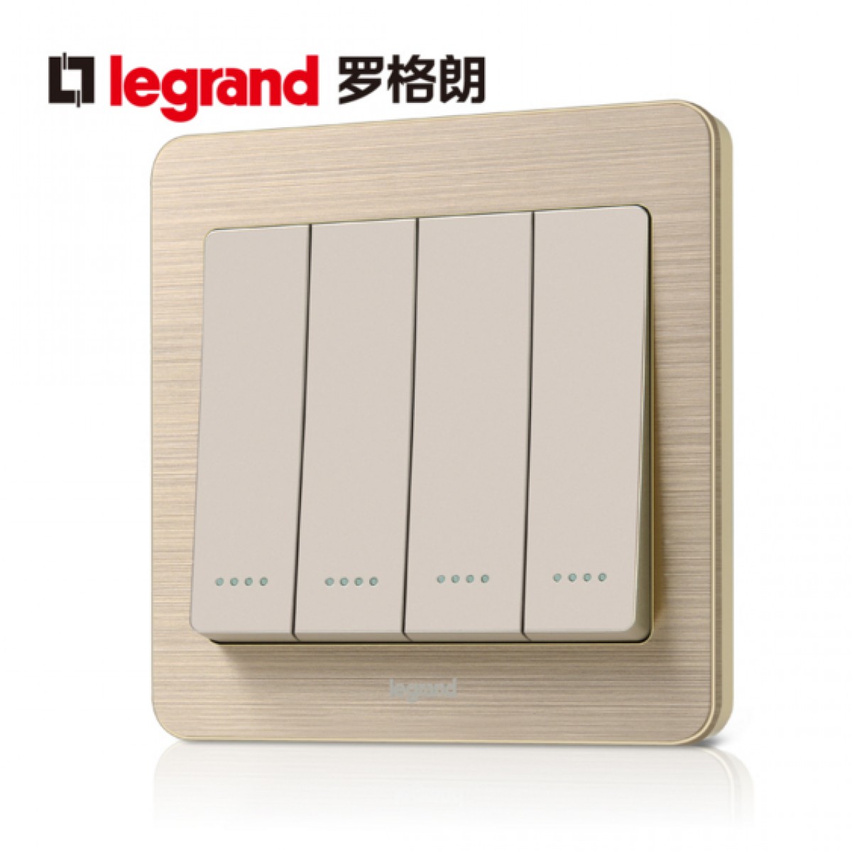 商品名称:罗格朗 开关插座细金纹四开单控荧光开关 四联单控开关面板荧光