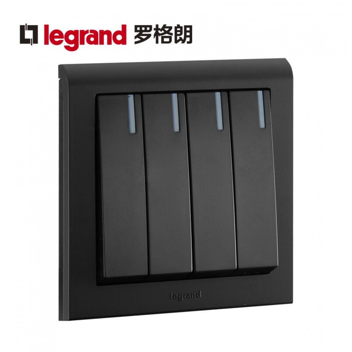 商品名称:罗格朗 黑色家用四开双控带LED指示灯4开四位四联双控开关面板