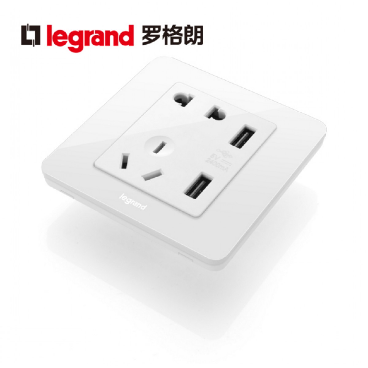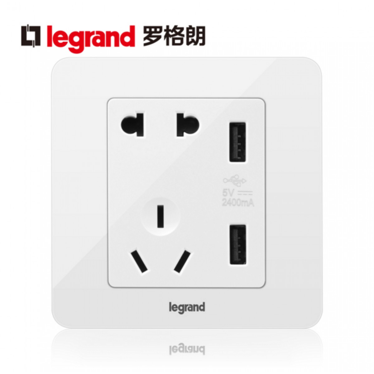 罗格朗 逸典圆二三插五孔带USB开关插座面板86型充电双口家用