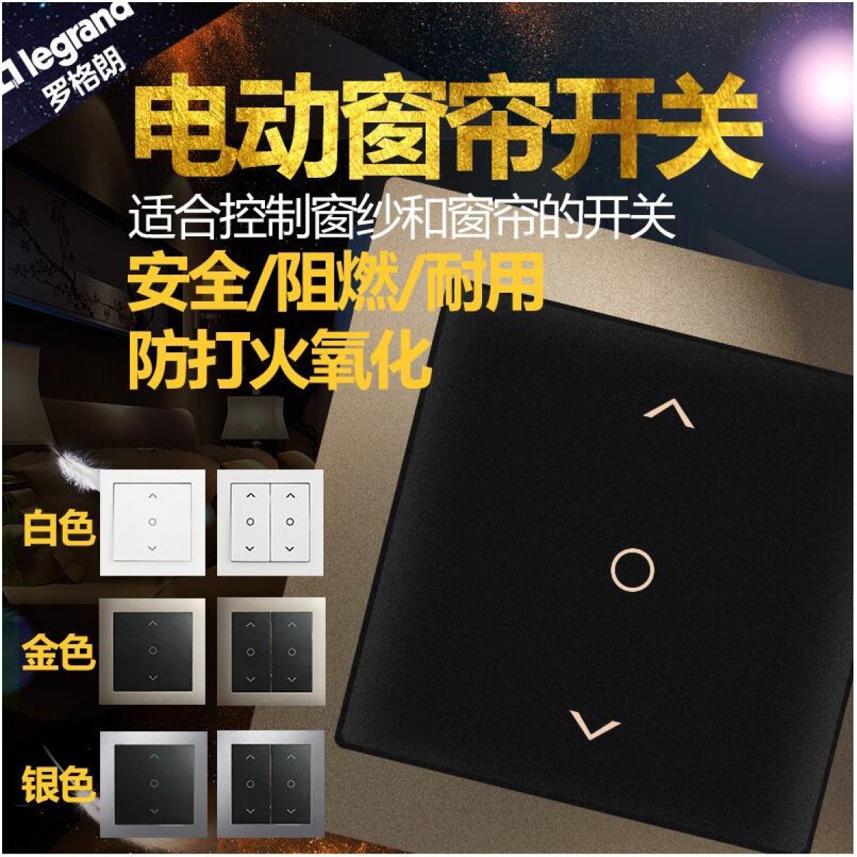 商品名称:罗格朗 一位位窗帘开关面板86型门帘开关器 开关双控开关逸享