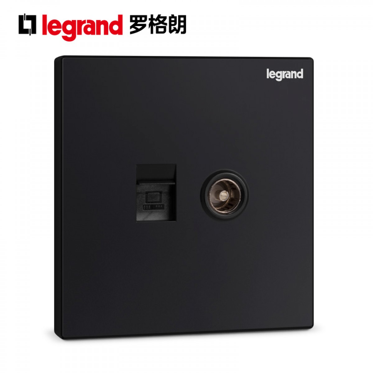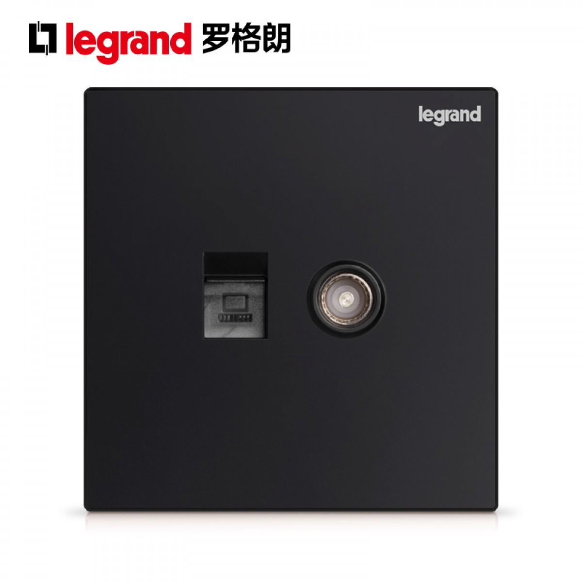 罗格朗 千兆黑色6类电脑电视插座六类网络网线宽带+有线面板二合一