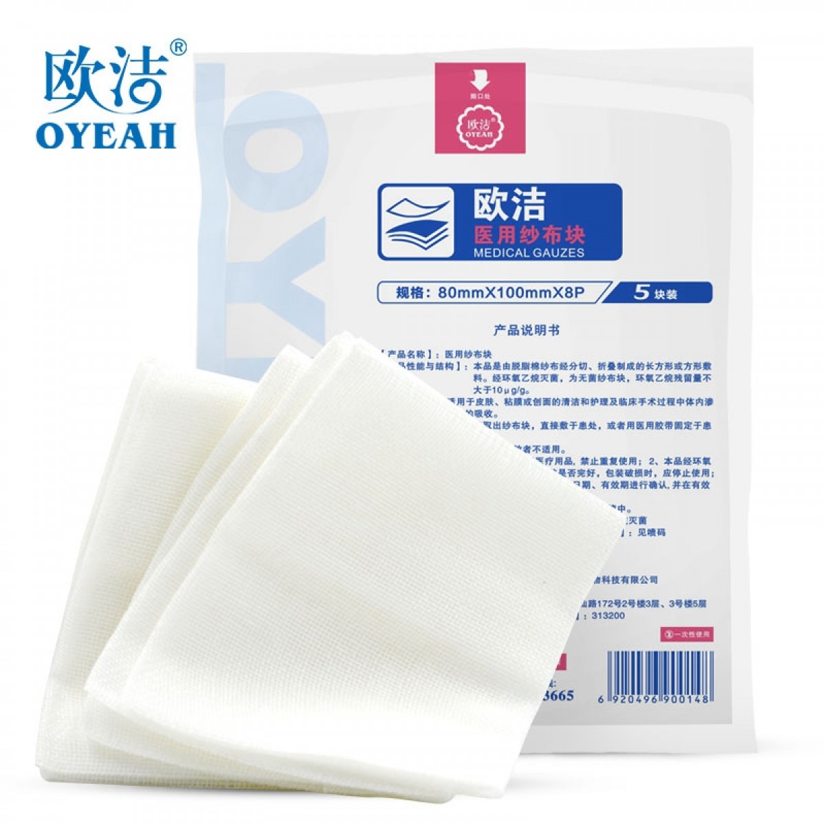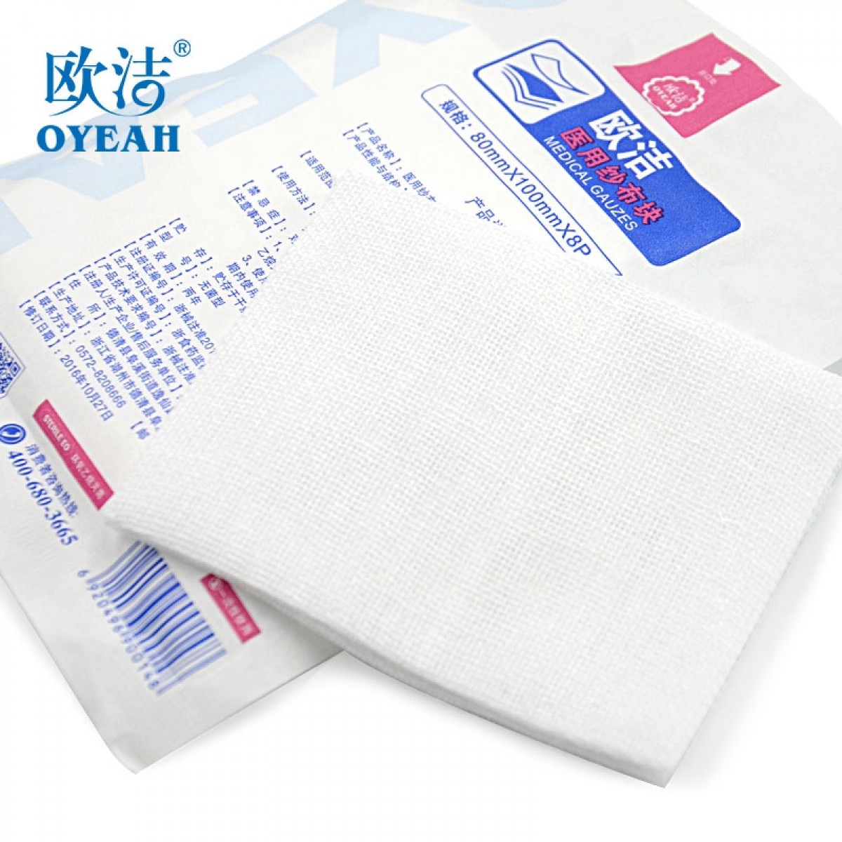 商品名称:欧洁 医用灭菌纱布块80mm*100mm* 8P*5块脱脂棉纱布伤口护理敷料贴