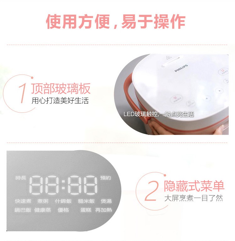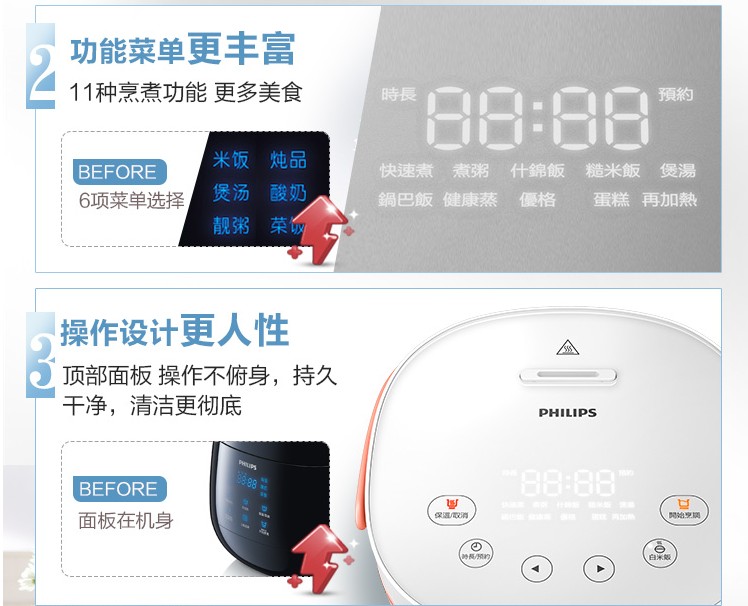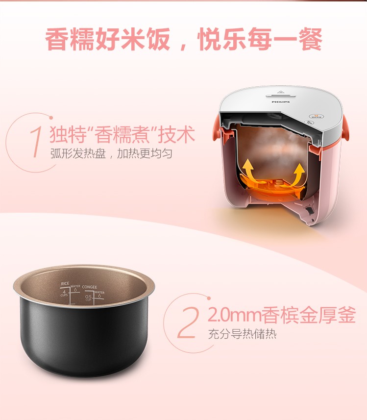 商品名称:飞利浦 HD3070家用电饭锅小型迷你多功能1-2-3人电饭煲