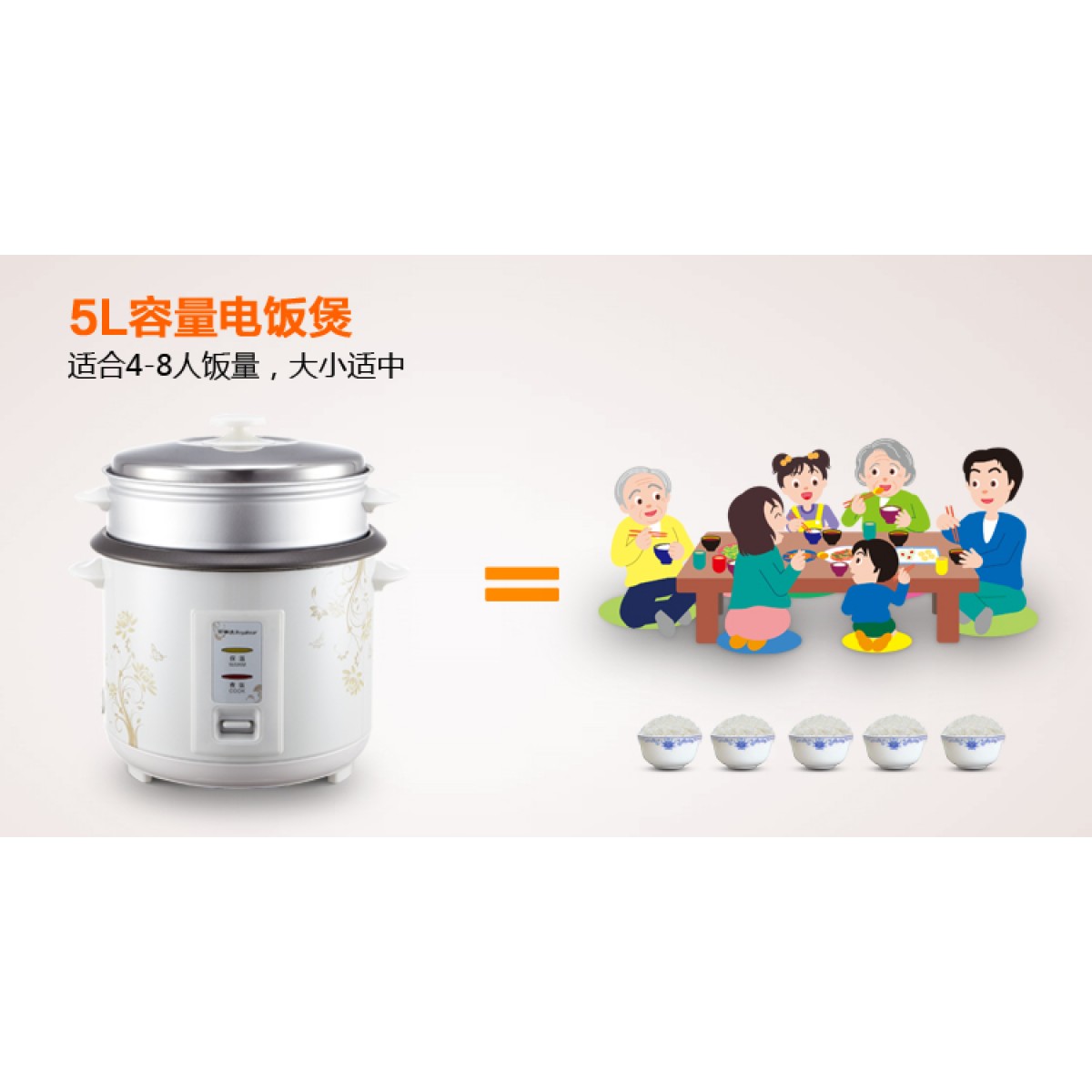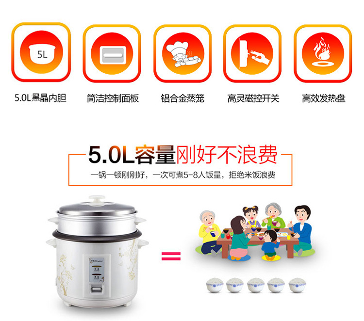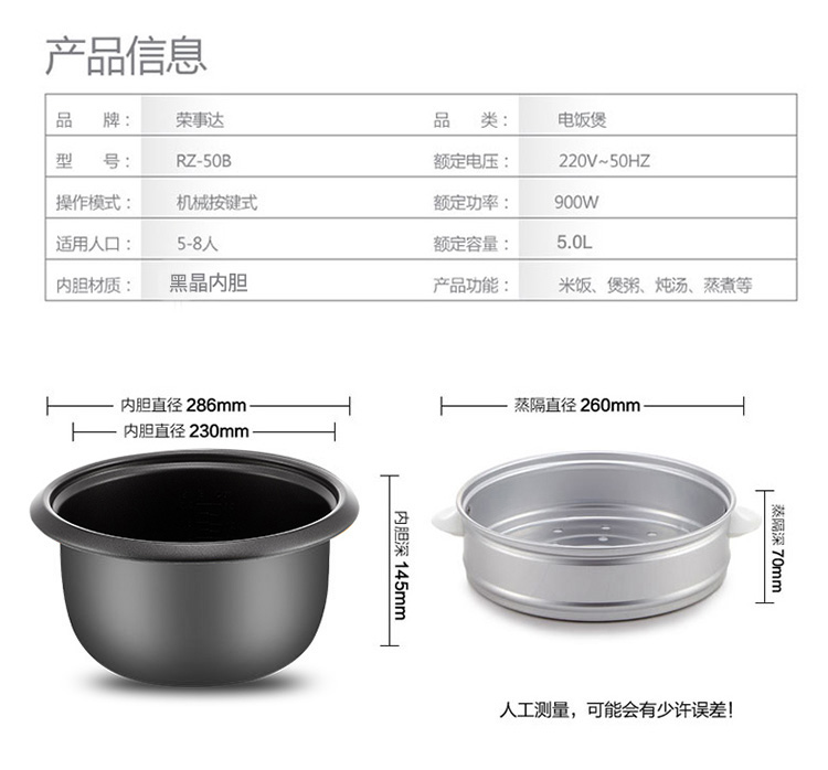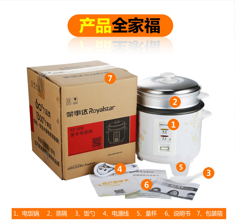 商品名称:荣事达 RZ-50B电饭煲5L升老式家用电饭锅4人-6人不粘锅
