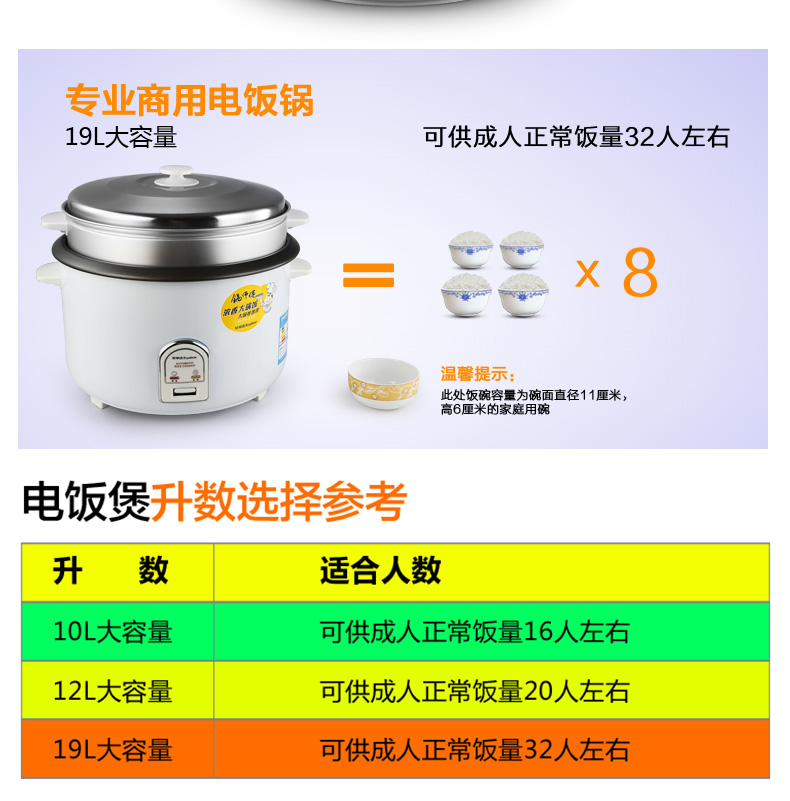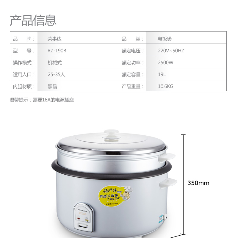 商品名称:荣事达 电饭煲电饭锅商用19L大容量 RZ-190B