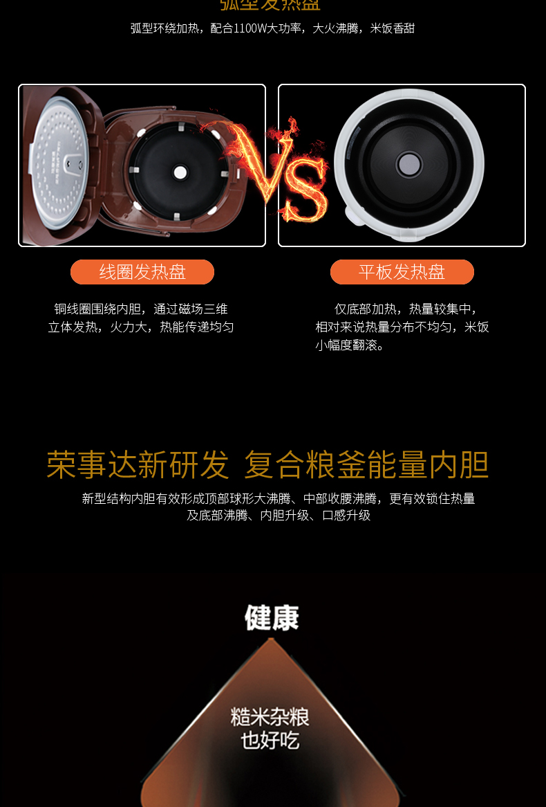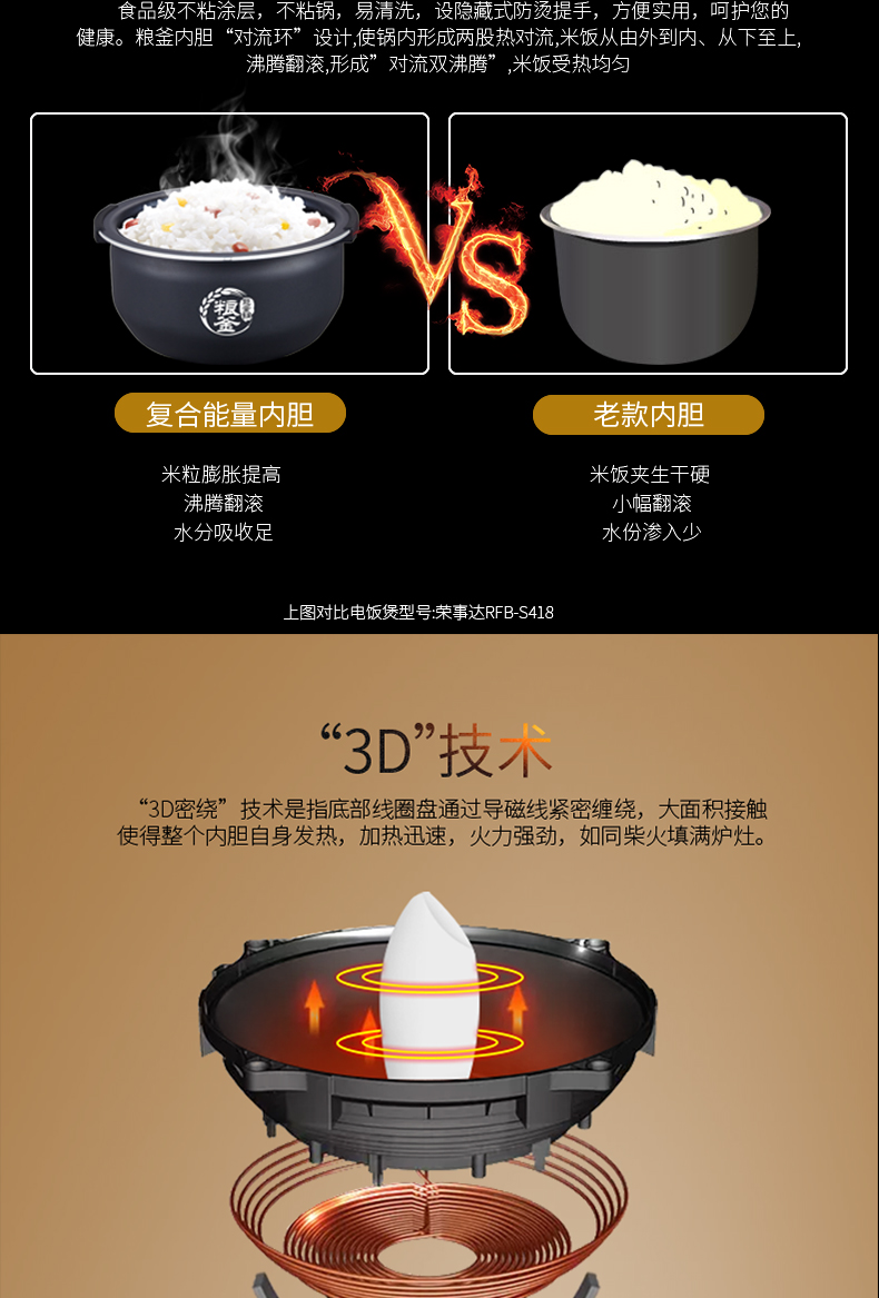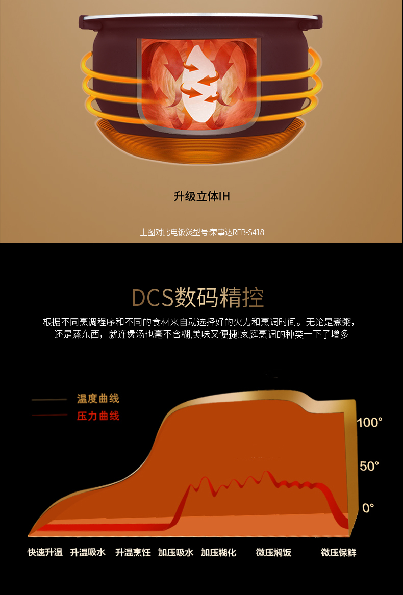 荣事达 RFB-IH40E微电脑电磁电饭煲 IH大火力均匀加热