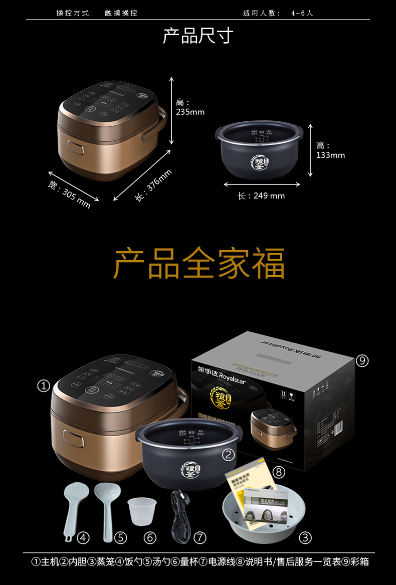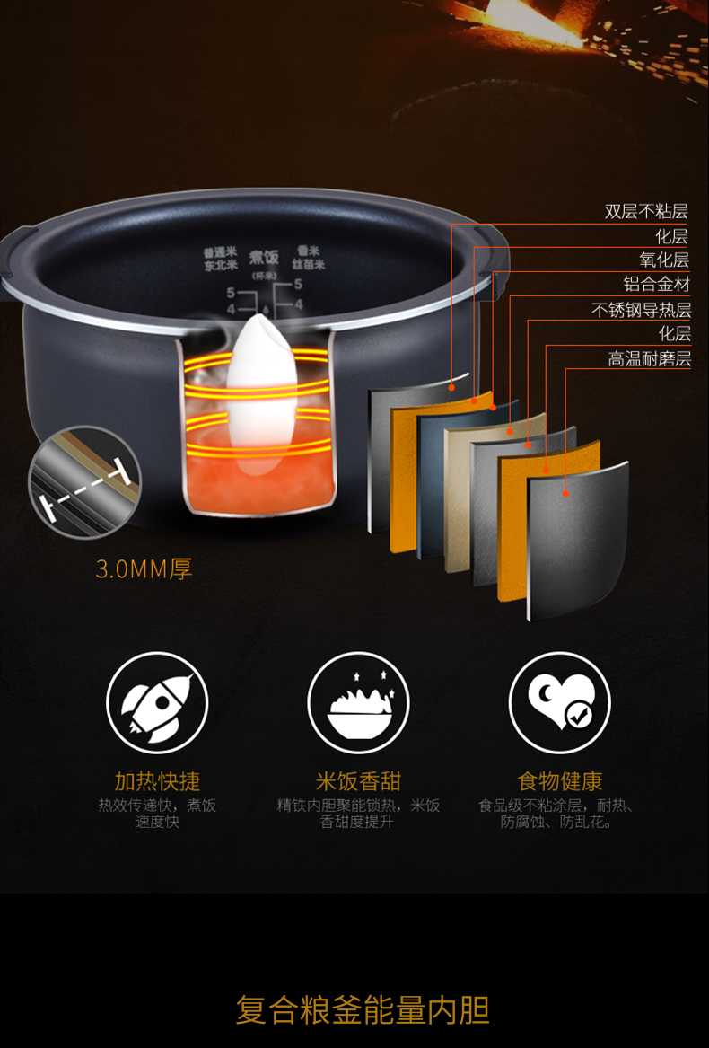 商品名称:荣事达 RFB-IH40E微电脑电磁电饭煲 IH大火力均匀加热