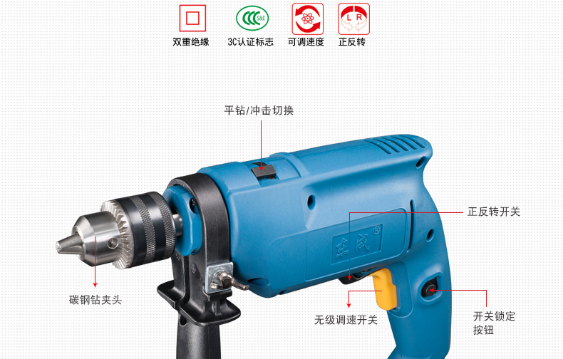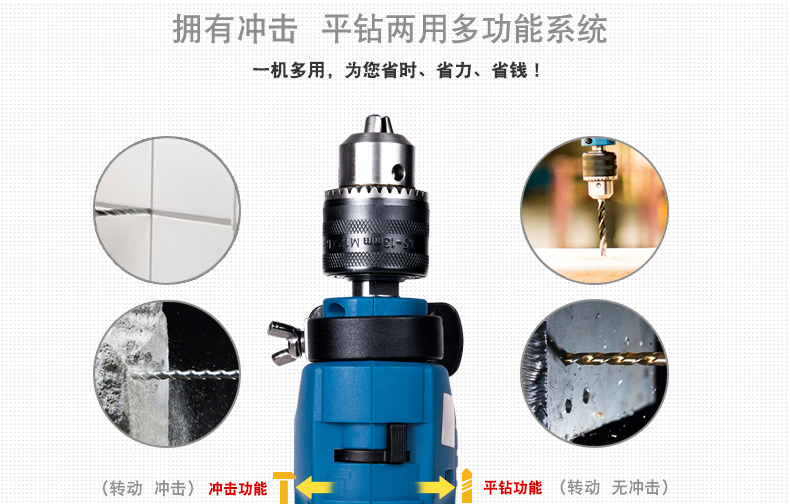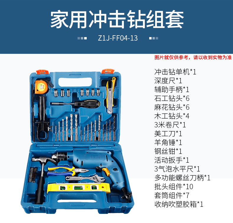 商品名称:东成 电动工具套装电钻冲击钻家用手枪钻多功能电动螺丝刀手电转钻 Z1J-FF02-13