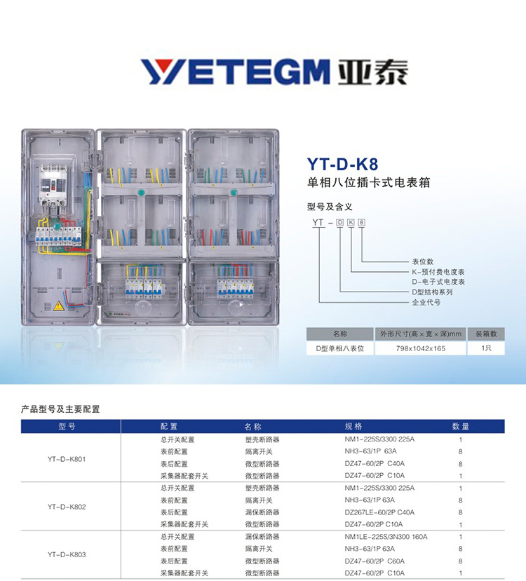 商品名称:和讯自有产品 单相八位插卡式电表箱 YT-D-K801