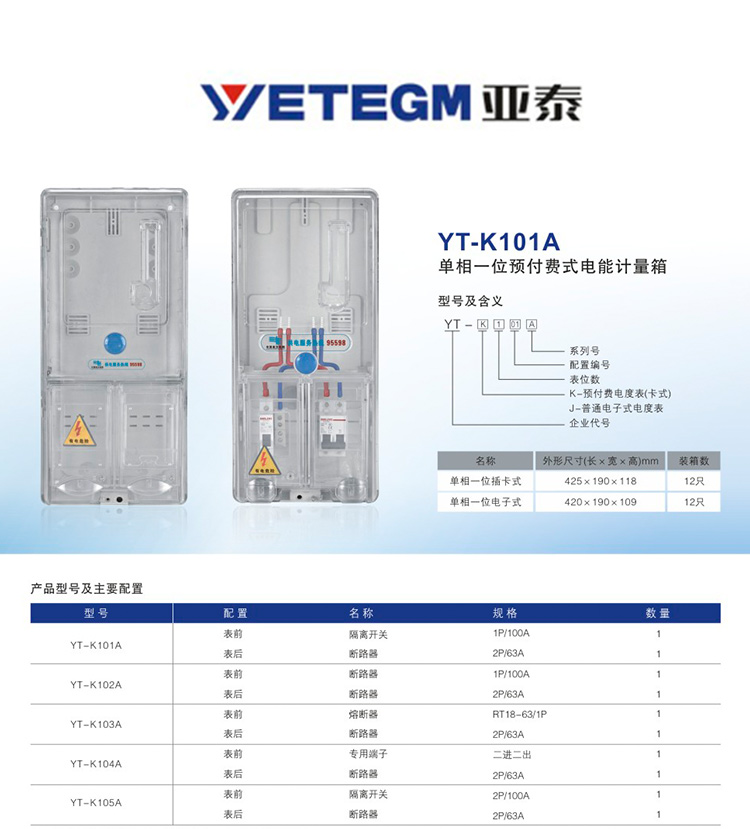 和讯自有产品 单相一位预付费式电能计量箱 YT-K105A