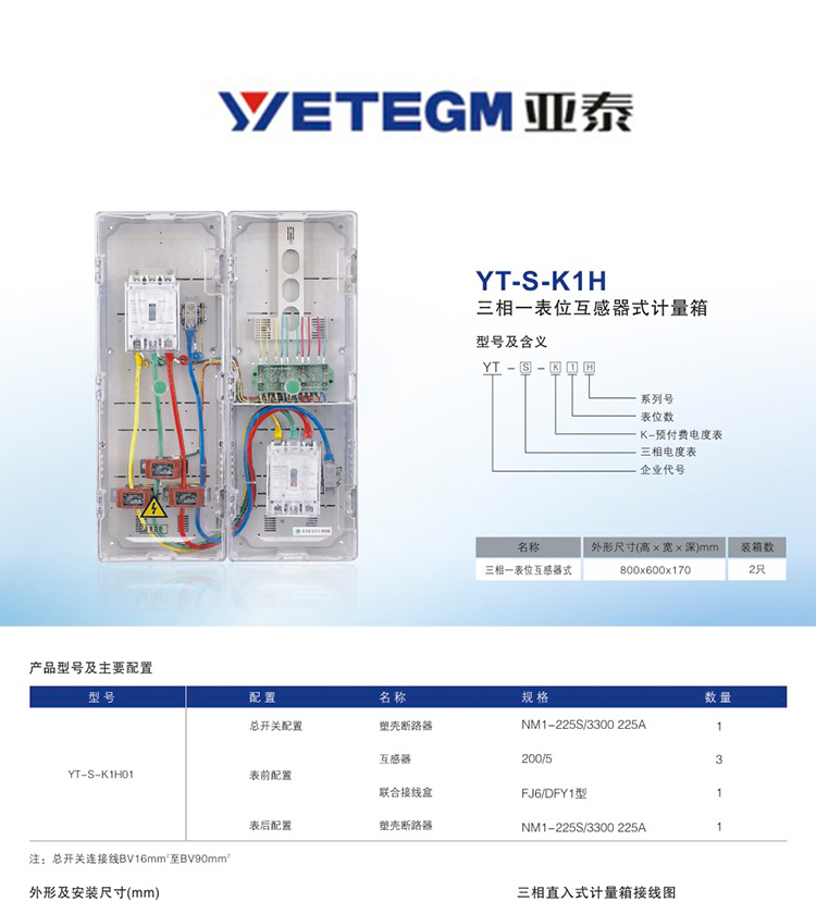 商品名称:和讯自有产品 三相一表位互感器式计量箱 YT-S-K1H01