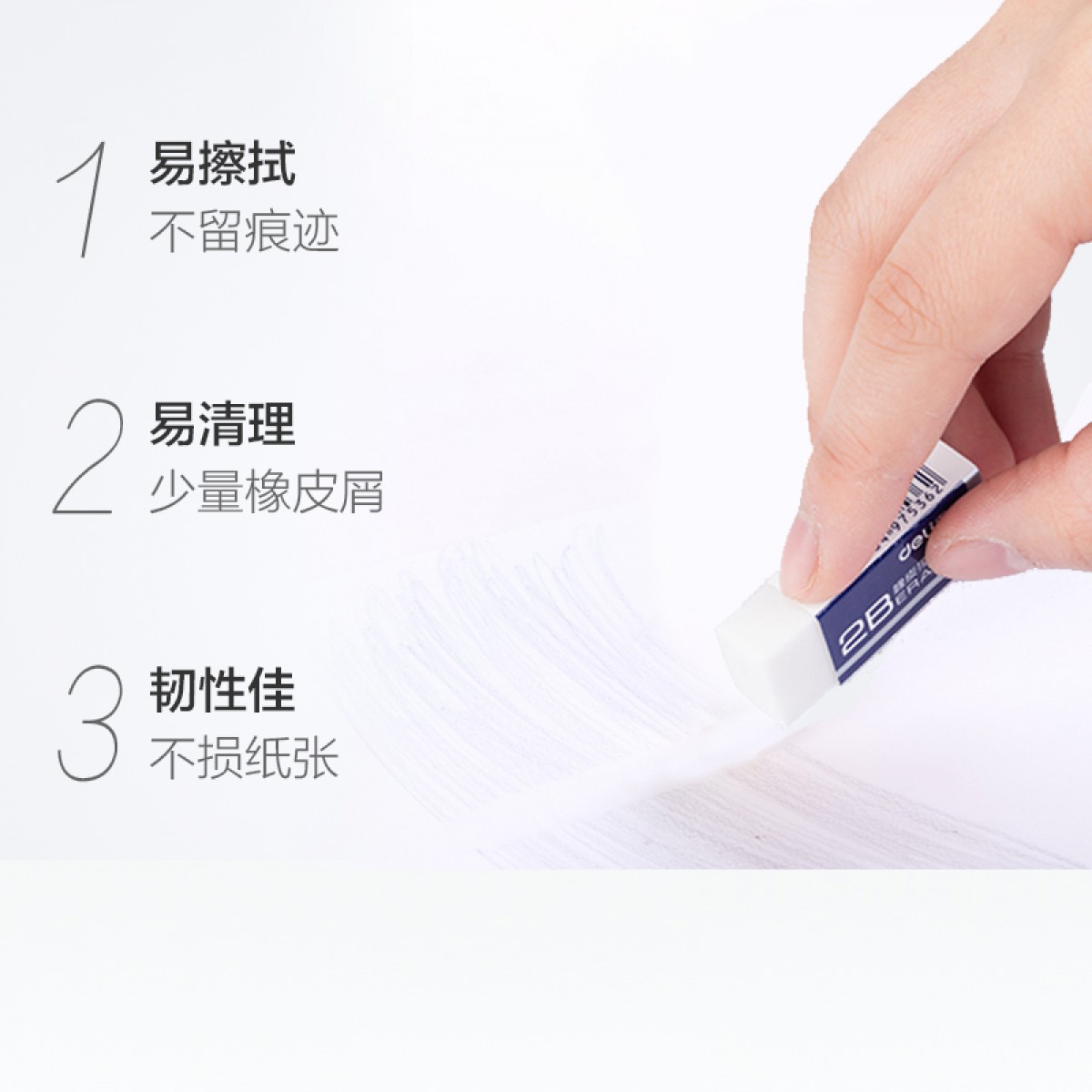商品名称:得力 2b橡皮擦 学生考试美术绘画 白色 45块装 42*17*10mm