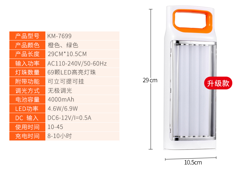 商品名称:国产 LED充电灯泡家用移动神器超亮夜市灯摆摊照明无线停电备用应急灯KM-7621C