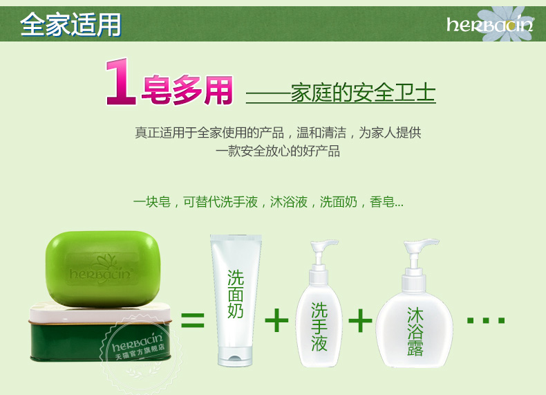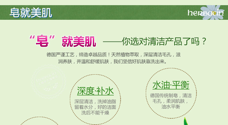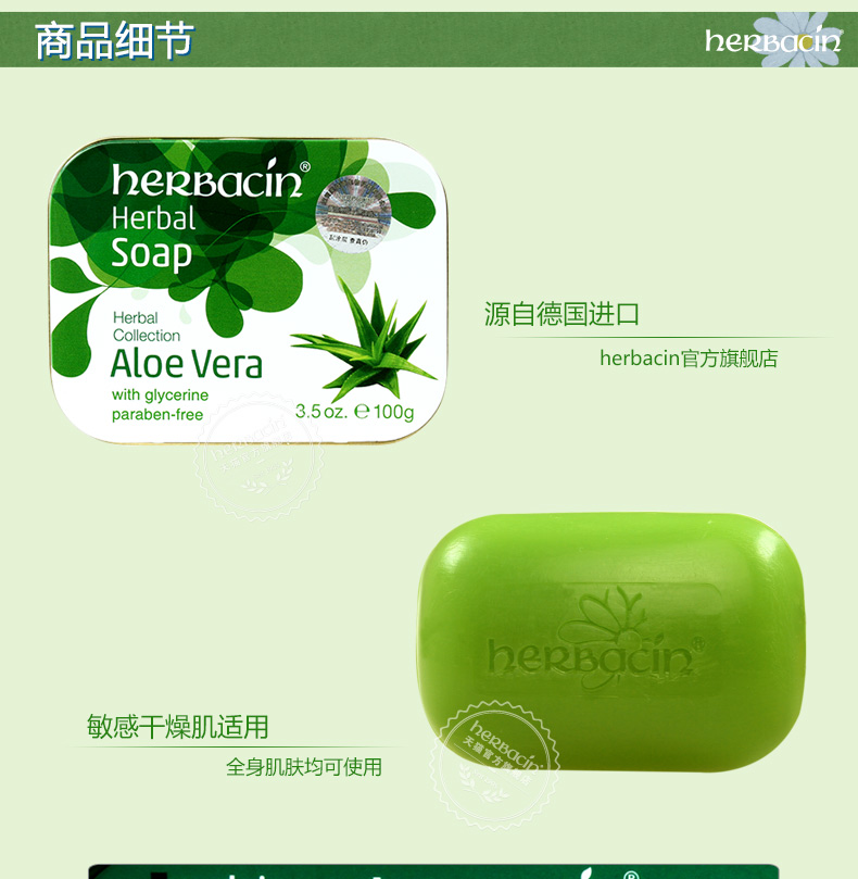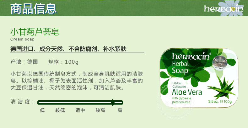 商品名称:贺本清/Herbacin 德国小甘菊芦荟皂 洁肤温和 清洁保湿 舒缓 补水