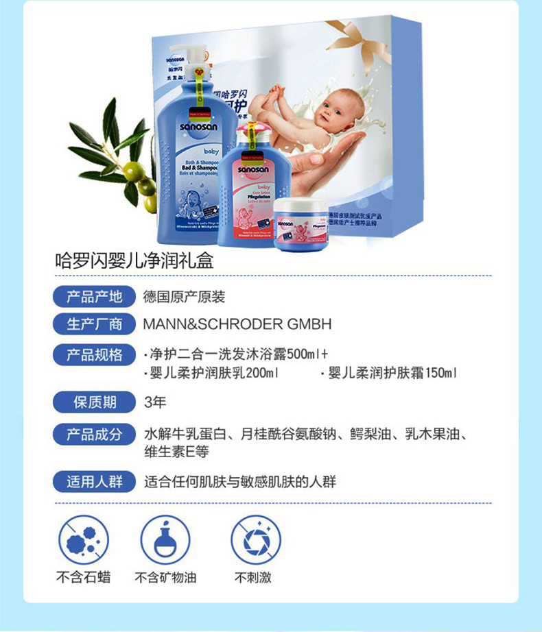 商品名称:哈罗闪 婴儿净润礼盒3件套婴儿洗护用品新生儿宝宝洗护套装