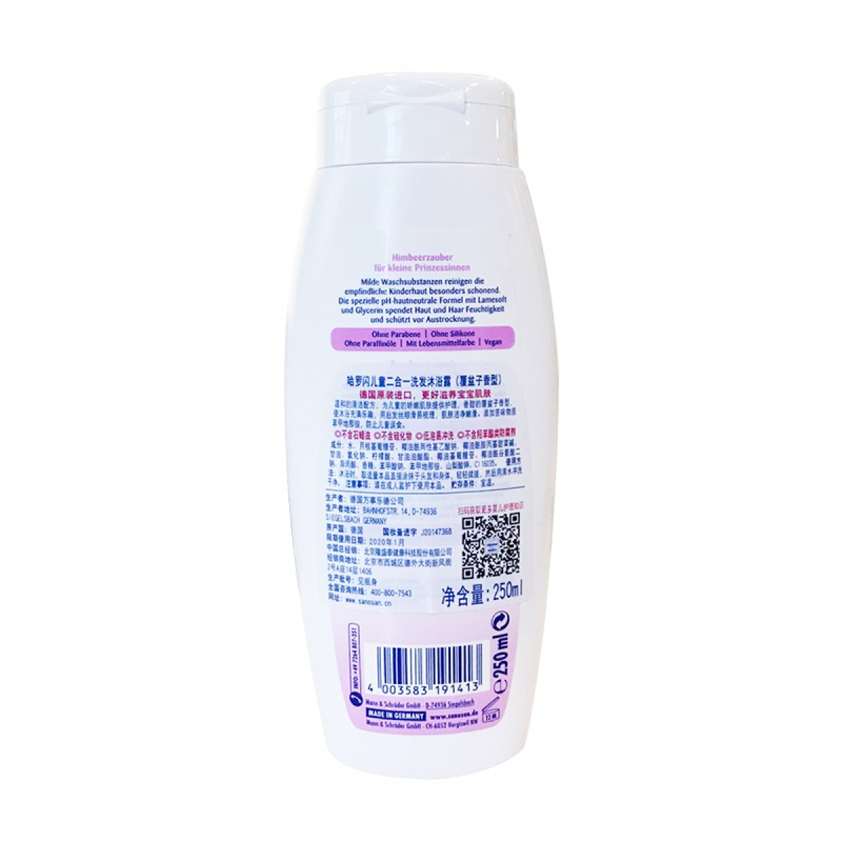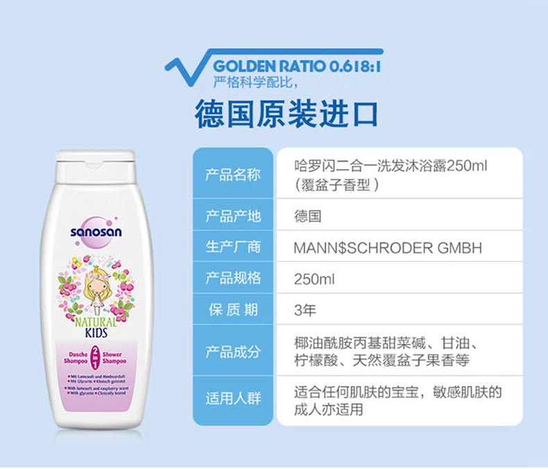 商品名称:哈罗闪 儿童2合一洗发沐浴露250ml覆盆子香型宝宝洗浴用品