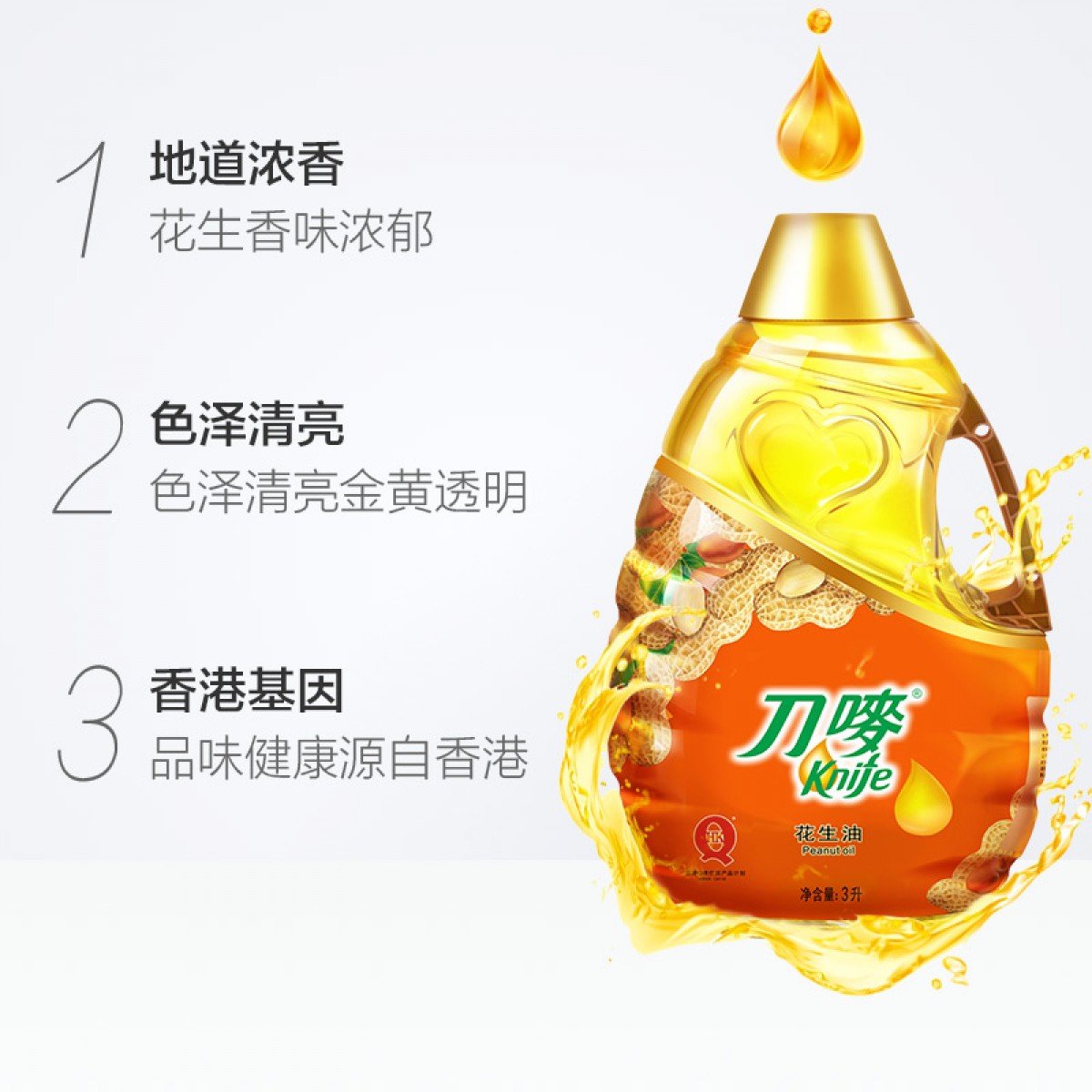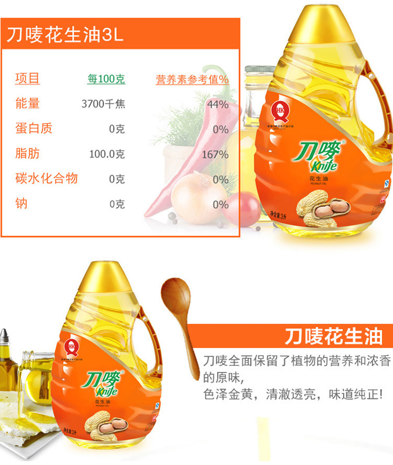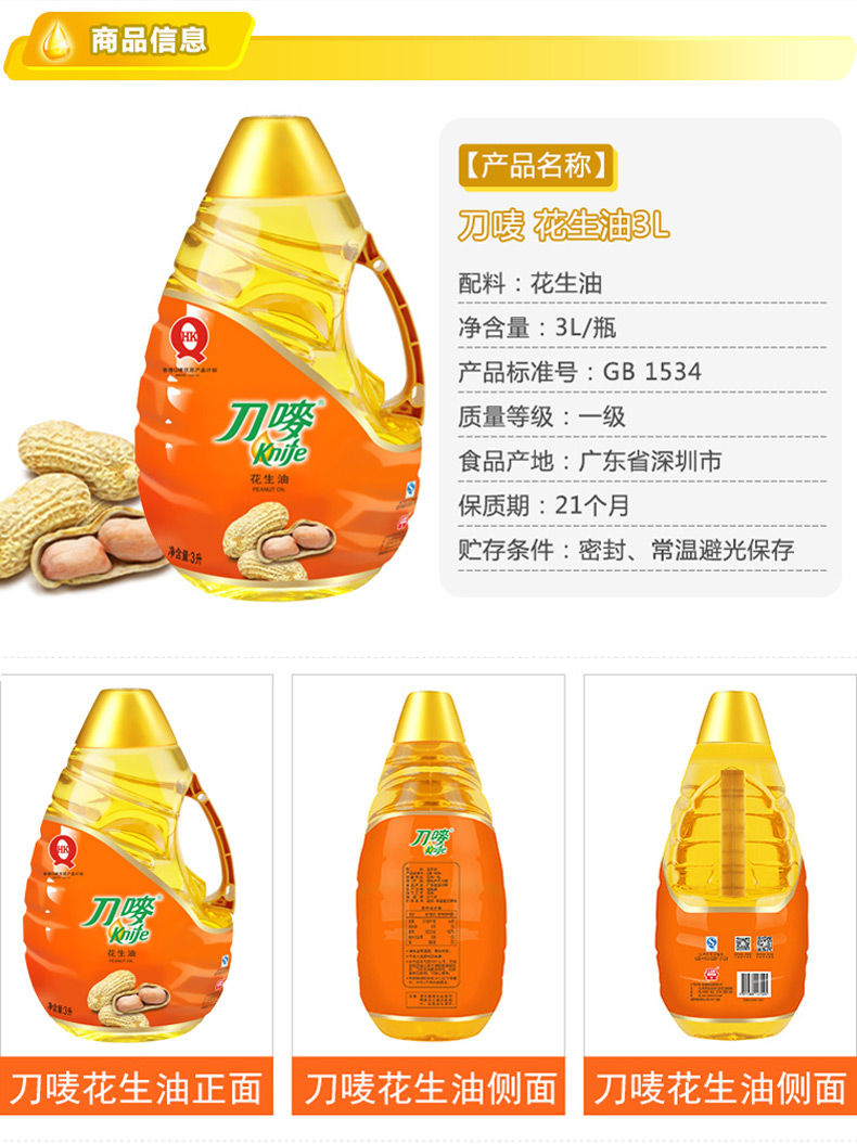 商品名称:刀唛/Knife 食用花生植物油 物理压榨 健康调味花生油3L