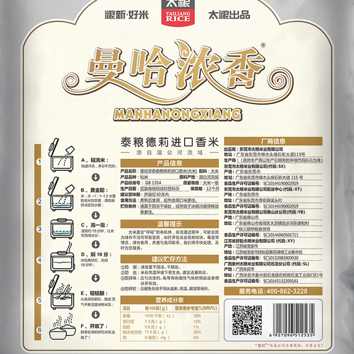 商品名称:太粮 曼哈浓香泰粮德莉进口香米15kg进口原粮 籼米 油粘米