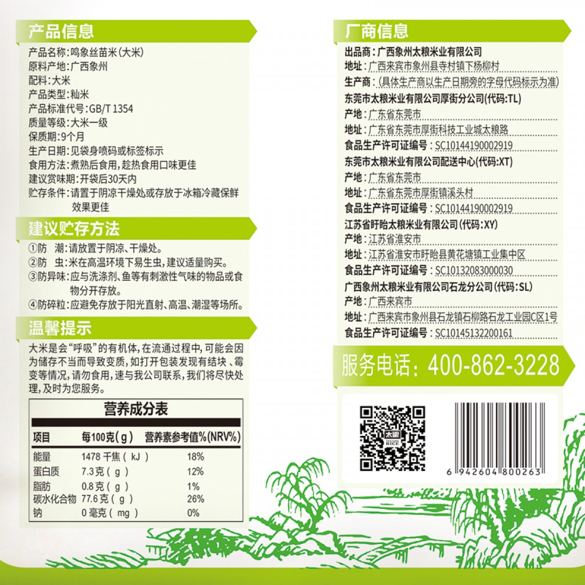 商品名称:太粮 鸣象丝苗米10KG/袋 广西香软米非东北大米