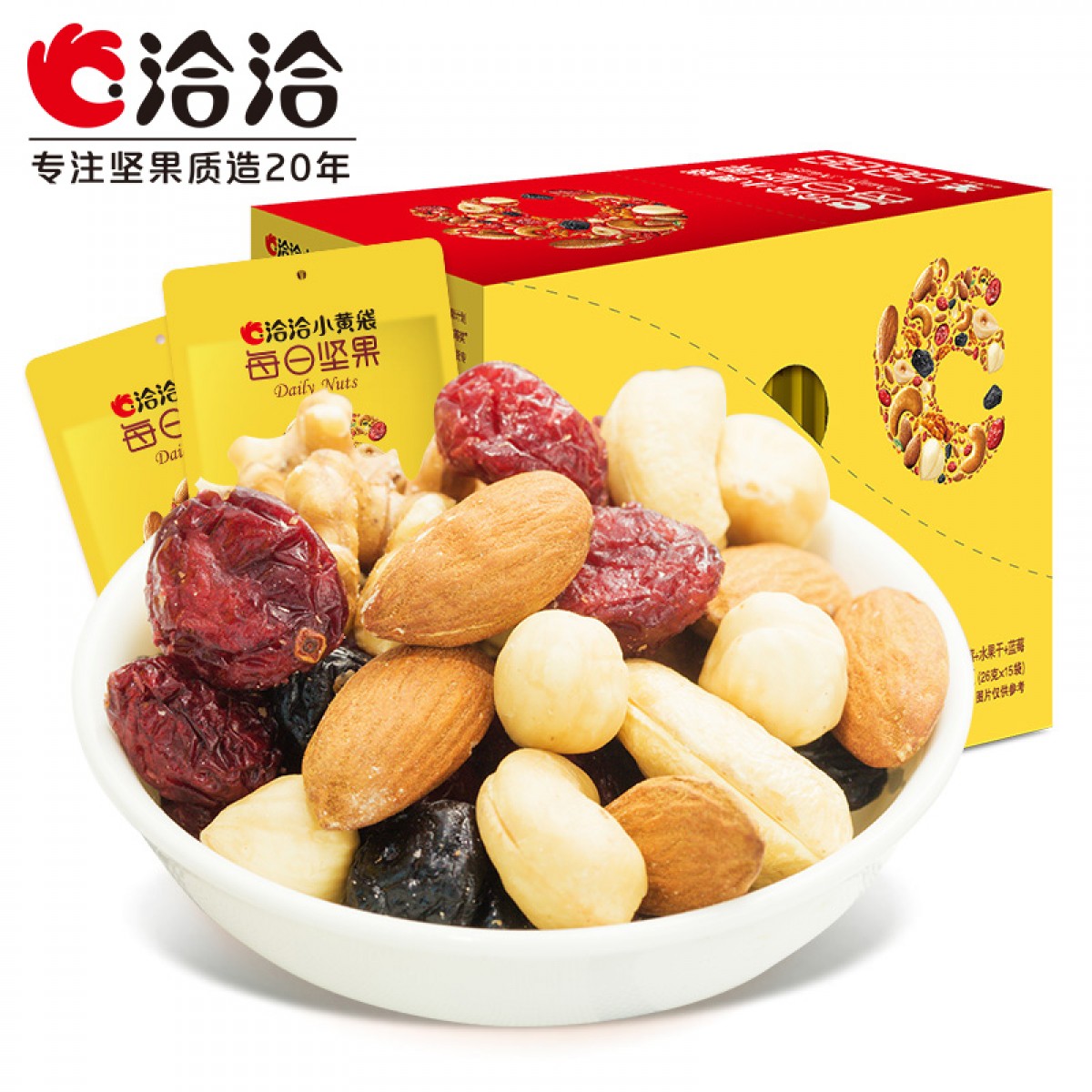 商品名称:洽洽 混合坚果恰恰每日坚果果仁果干每天一包零食大礼包26g*15袋