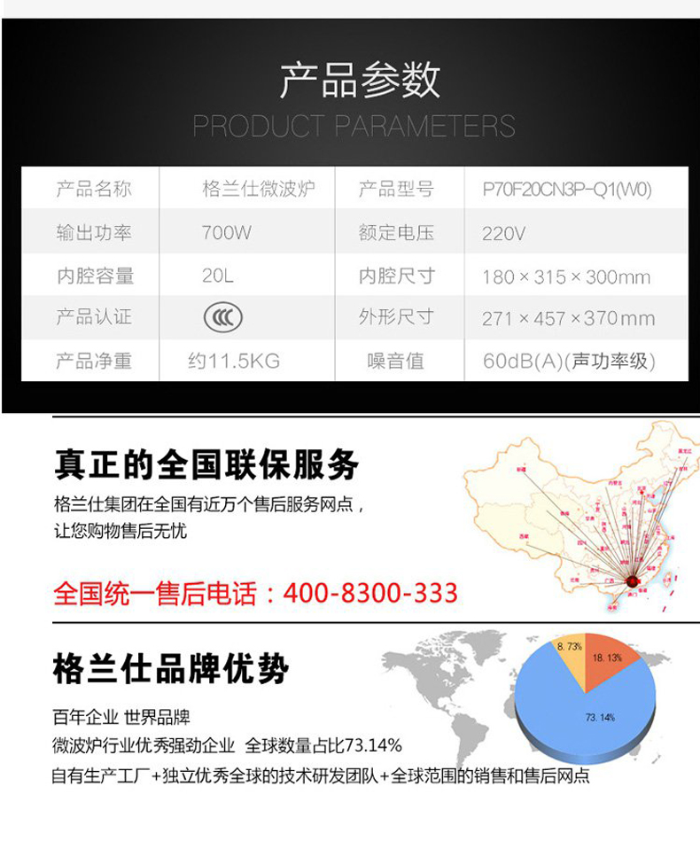 商品名称:格兰仕 家用智能平板20L多功能微波炉 P70F20CN3P-Q1(W0)