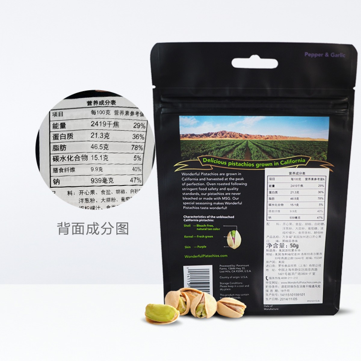 商品名称:Wonderful/万多福 黑椒味开心果独立小包装袋装50g