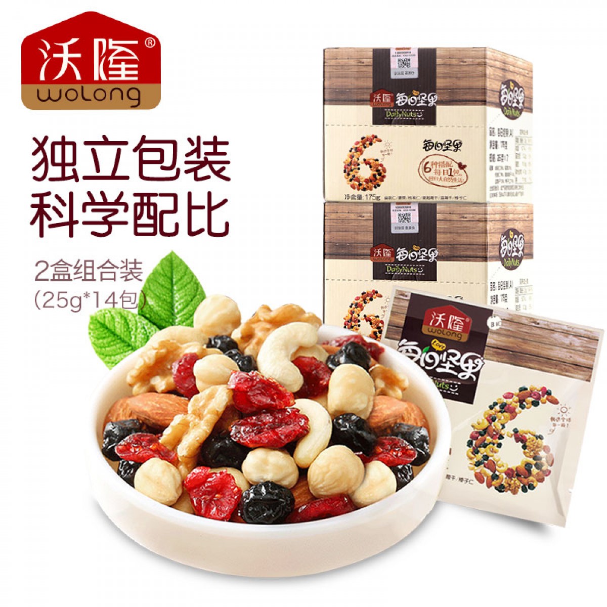 商品名称:沃隆 每日坚果175gx2盒混合坚果14袋综合果仁孕妇零食