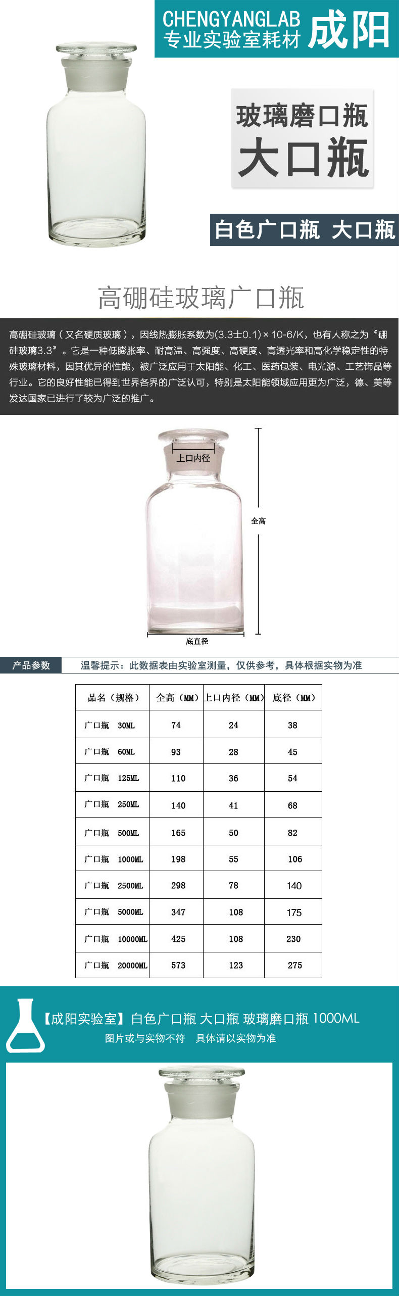 商品名称:国产 量筒 广口瓶 玻璃磨口瓶 白色 1000ML