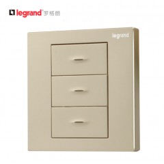 罗格朗 开关插座面板仕典金色三开双控带LED纯平复位墙壁电源86型