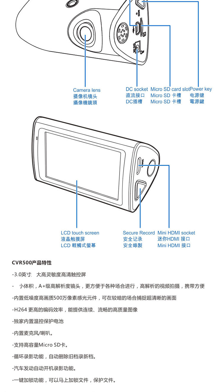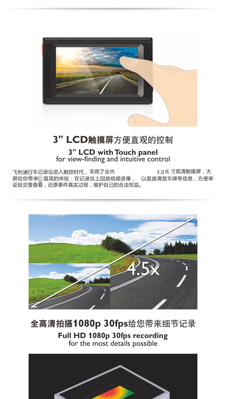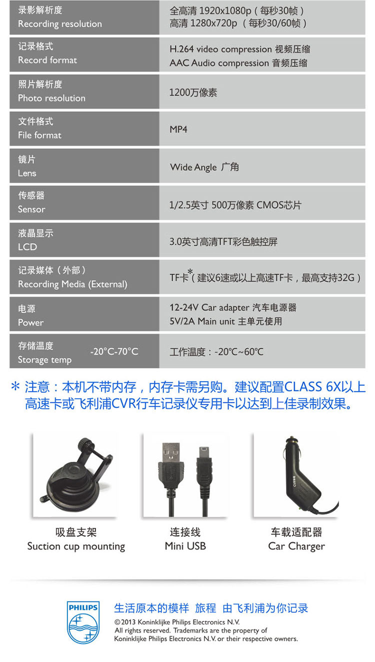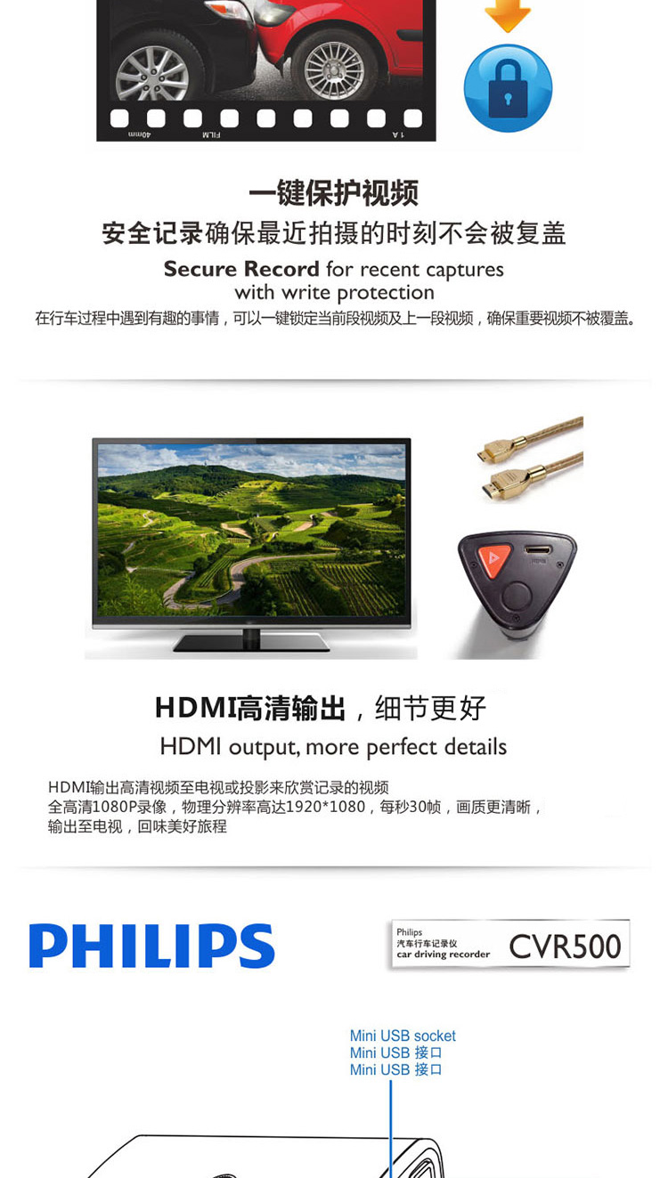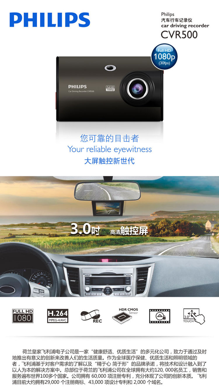 商品名称:飞利浦 行车记录仪大品牌超高清1080P广角夜视 CVR500